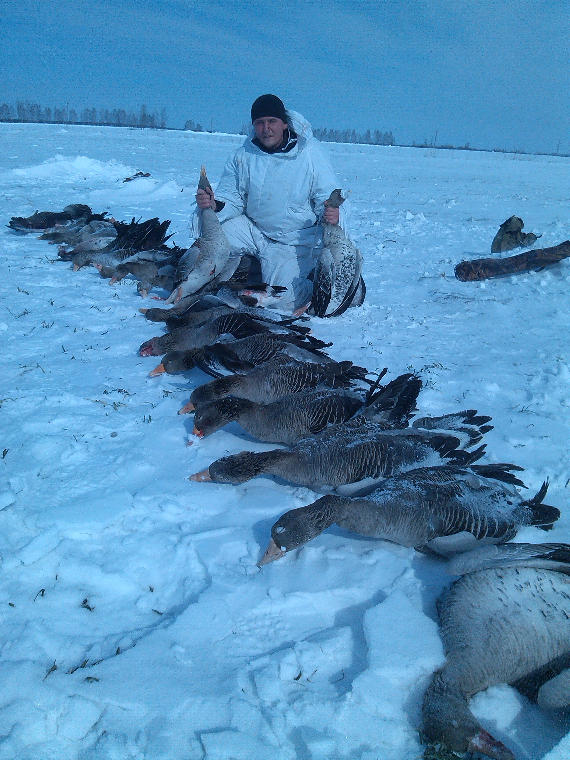 P.S. Вчера хотел выехать в город на внедорожнике, но увы вдве стороны улицу замело по пояс. Пришлось махнуть на все рукой.... и поехал в сельмаг за пивом на "Тайге". Так вот как только я удалился полем от околицы что ее уже не видно из-за метели наблюдаю картину ,аж ох-ел... на моем пути из-под снега выпригивали гуси как куропатки и вразные стороны.А те что пытались подняться все равно садились на снег в 300метрах не более