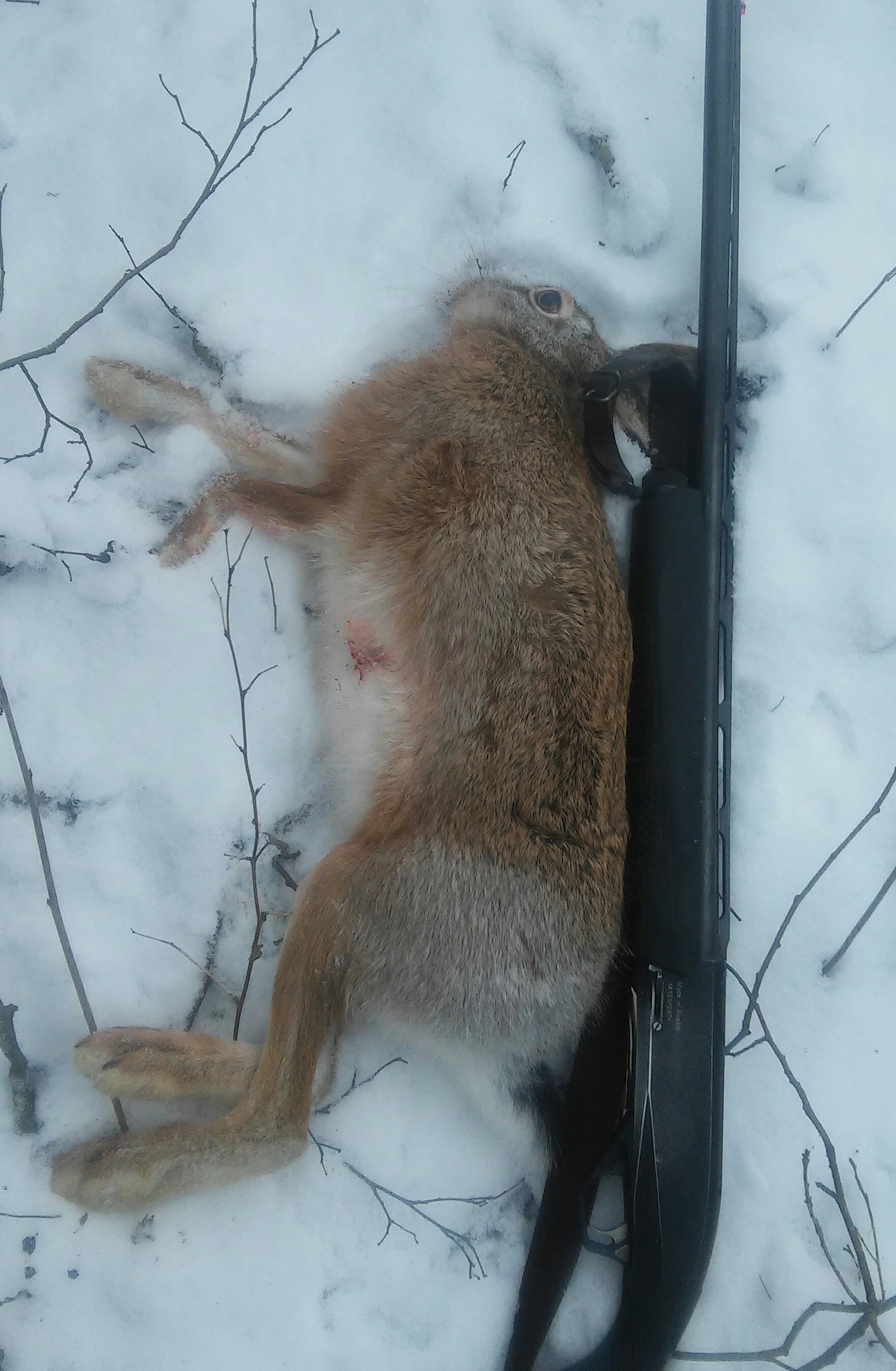 . Я решил двигаться дальше, сделал шаг, и заяц тоже сорвался к ближайшим кустам. Выждал некоторое время, чтобы косой залег, и пошел по его следу. Вышел я прямо на косого, но тот, ловко прикрываясь деревьями и мелким овражком успел уйти из-под выстрела, а потом так напетлял по старым следам, что в третий раз я его уже не смог найти. Домой вернулся довольный хорошим поединком, несмотря на то, что счет остался 2-0 в пользу зайца
