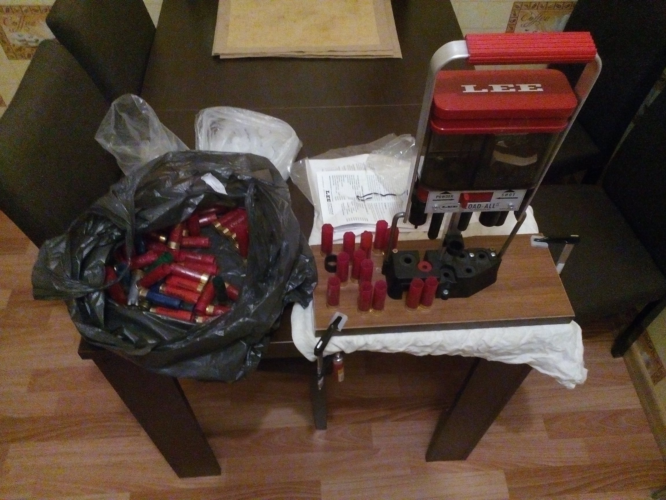 вот подготовился на вальдшнепа, главное правильно подобрать высоту пыжей и давить плавно,гильзы б/у спортивные