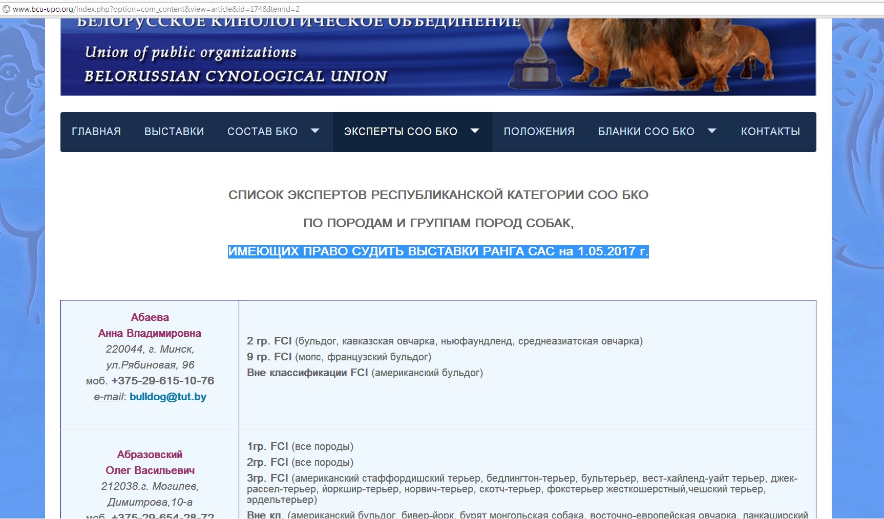 Интересно девки пляшут..... На сайте БКО список экспертов имеющих право судить в 2017г
