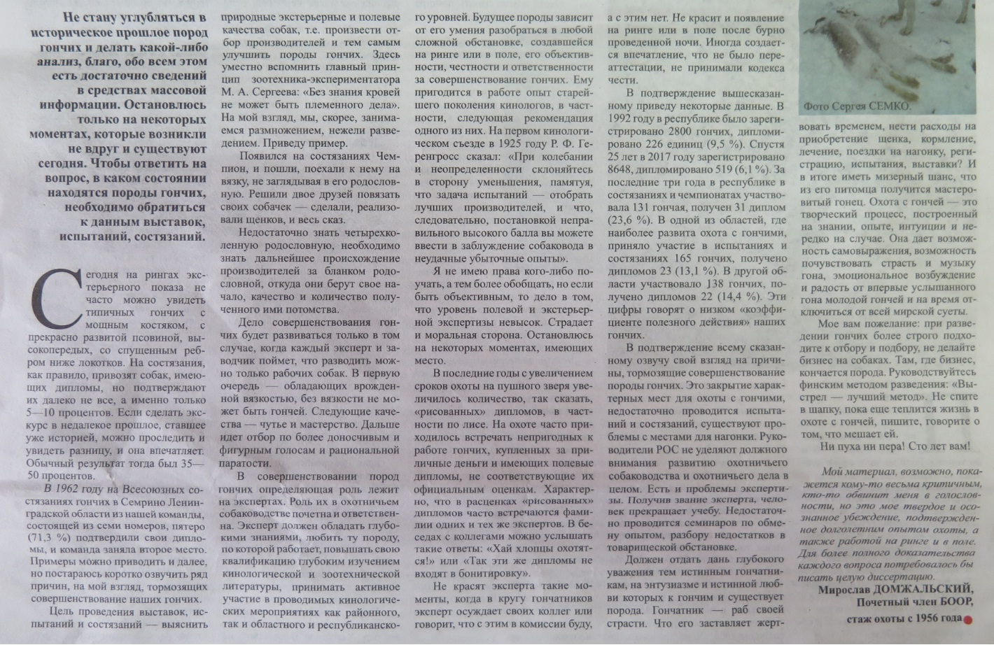 Давно не покупал ПиР. А тут по случаю попал в руки. С интересом прочёл статью эксперта Республиканской категории - Домжальского Мирослава Леонтьевича.