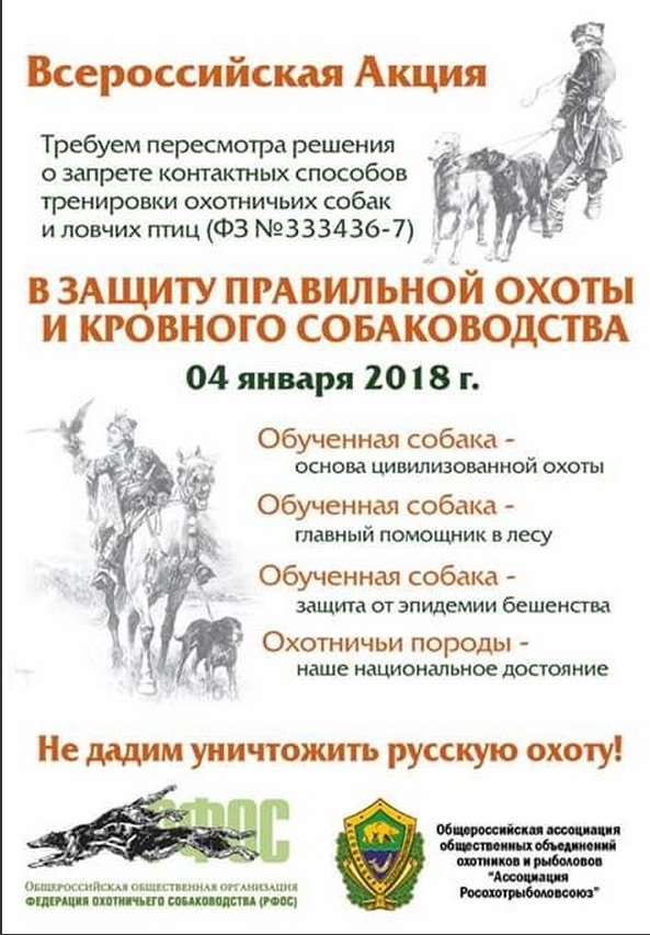 ЗАЩИТИМ ПРАВИЛЬНУЮ ОХОТУ И КРОВНОЕ СОБАКОВОДСТВО!