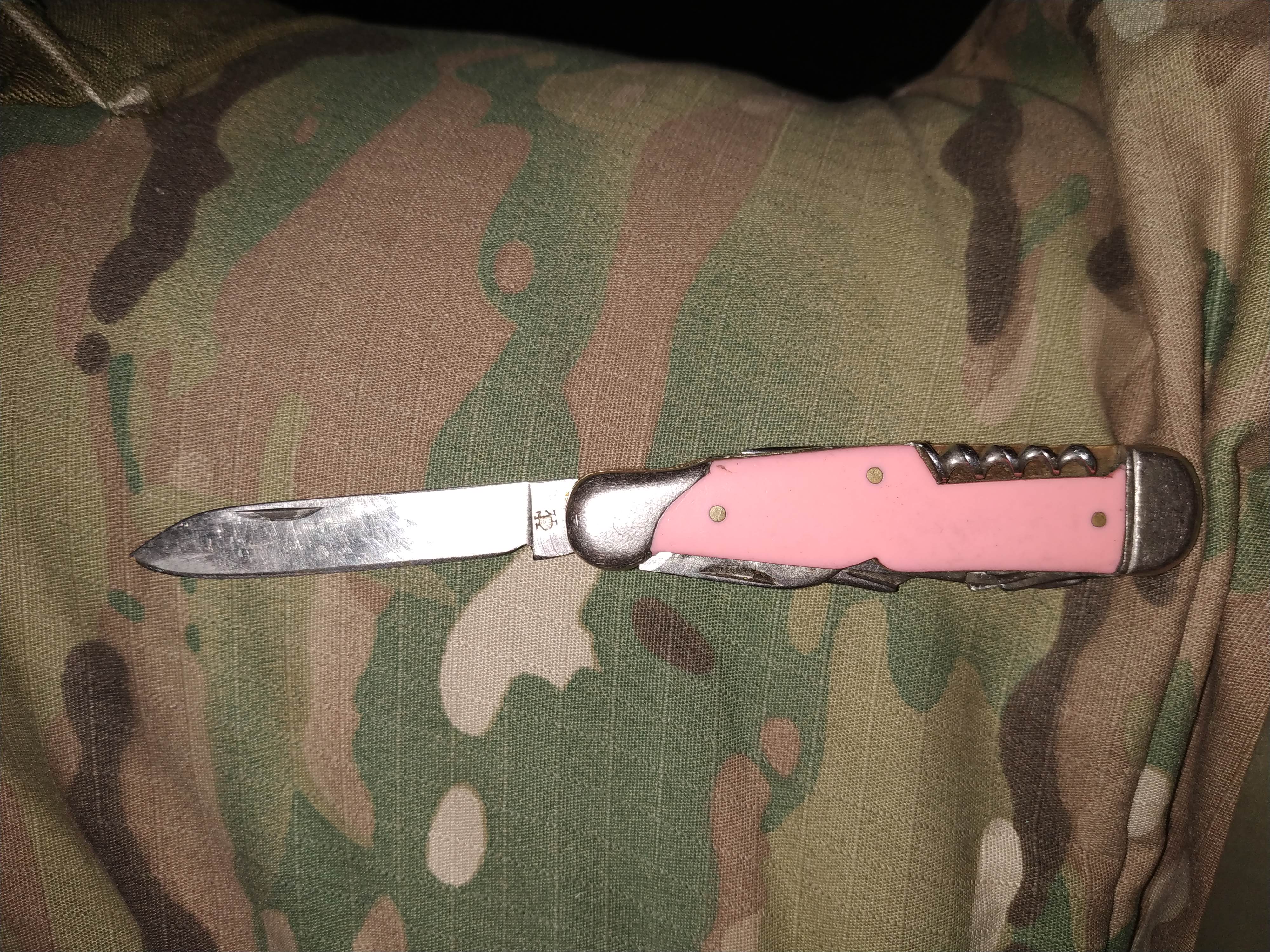 duelera писал(а):Есть у меня такой. 67года. Перочинный, розовенький.