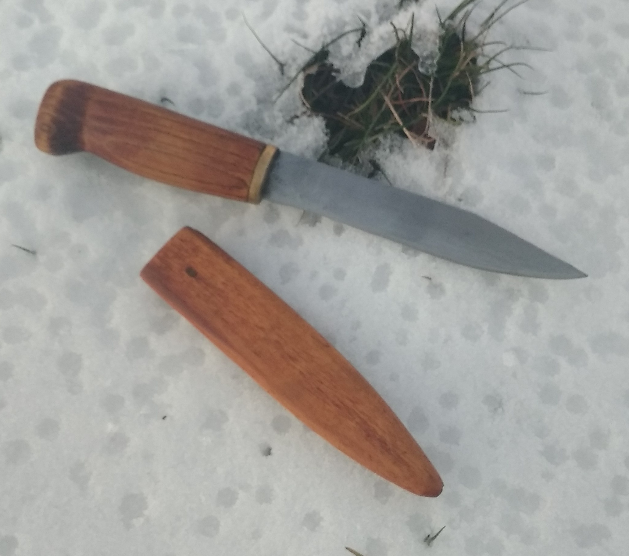 А тот "курц" что внизу был на скорую руку сделан из обломка штыкножа и рукоятки от напильника для заточки цепей бензопил, т.е. штука одноразовая. Живет этот ножичек у меня в хлеву. Ну там где какую веревочку отрезать.