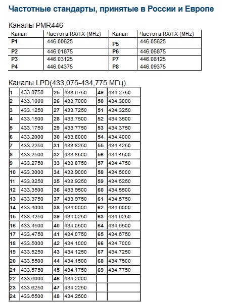 На этих каналах (частотах) я вычитал на форумах как бы можно с мощностью пол вата работать. Согласитесь - держать в голове 6 значные цыфры не удобно и не реально - проще и правильнее зашить это всё дело в рацию и понизить мощу путем установки дохлой антены + режима LOW.