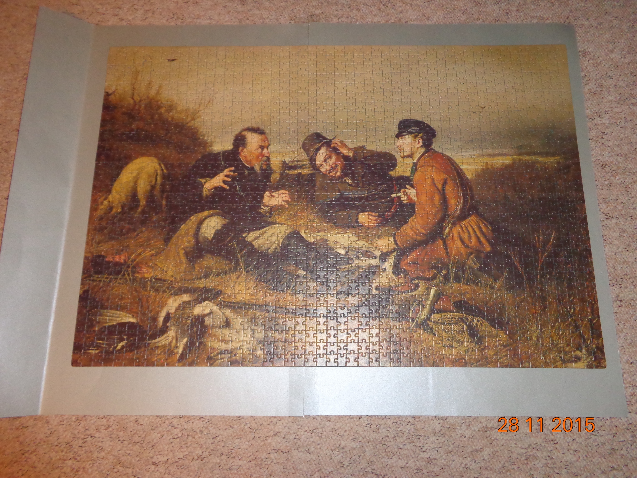Ставров писал(а):ООО,у мня есть пазл,не помню на сколько кусочков,но не маленький,где 3 охотника,после охоты беседуют,так вот у моего семейства ни сил,ни времени,ни нервов не хватило его собрать :de_vil: ...,так может у кого есть дети,или это кому интересно,кто сможет собрать эту головоломку,не безвоздмездно конечно...,со взрослыми договоримся,а детям,что пожелают!детям мороженое,взрослым цветы... :-) (шутка конечно).его если собрать,то можно склеить,и получится картина!!!!! :co_ol: