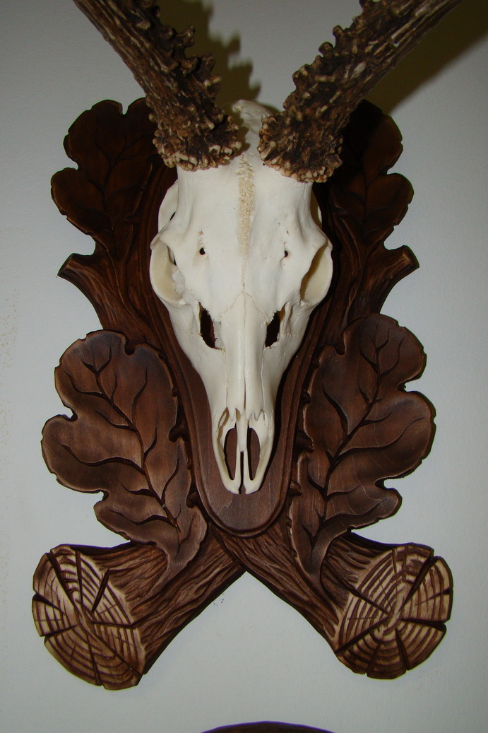 1. Фрезерованный медальон под любой трофей (череп). Ольха. Цена: 500 руб.