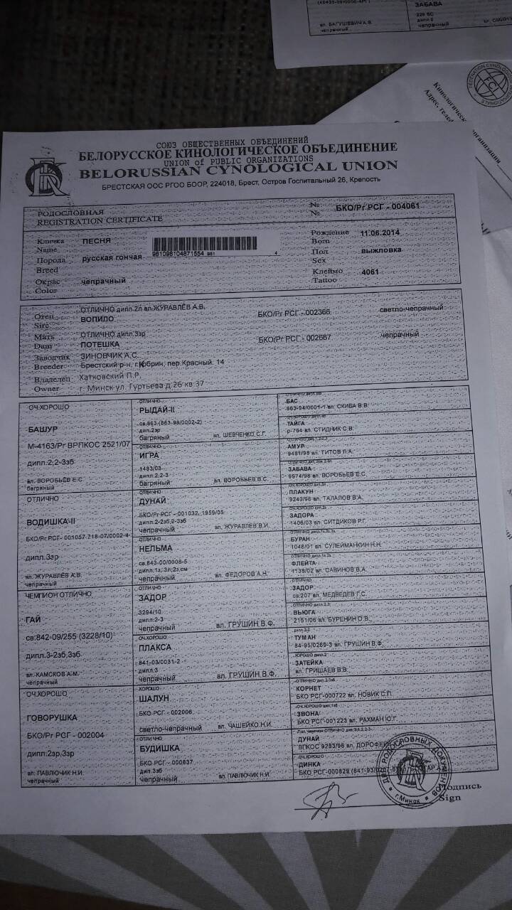 Интересная родословная выжловки... Не не кровями...))) Хозяином бышим, как я понимаю... Вот эта вот вязка с его постом 998 вот здесь Cсылка скрыта. Для просмотра необходима регистрация на форуме или войдите на форум., ну никак, простите за топтологию, НЕ ВЯЖЕТСЯ... Голос 5-2 видимо должен быть в породе 100%