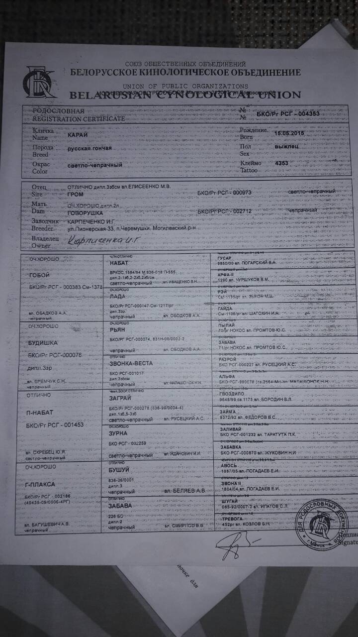 Выжлец Карай 2 состязательных диплома 3 з.р. 3.б.
