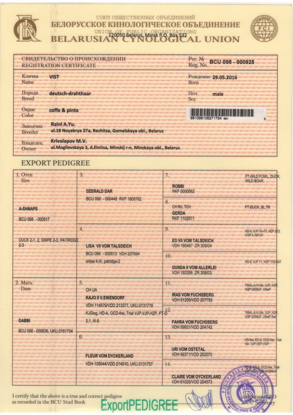 Все дипломы за рабочие качества с указанием по виду дичи : IIIкр, IIIкс