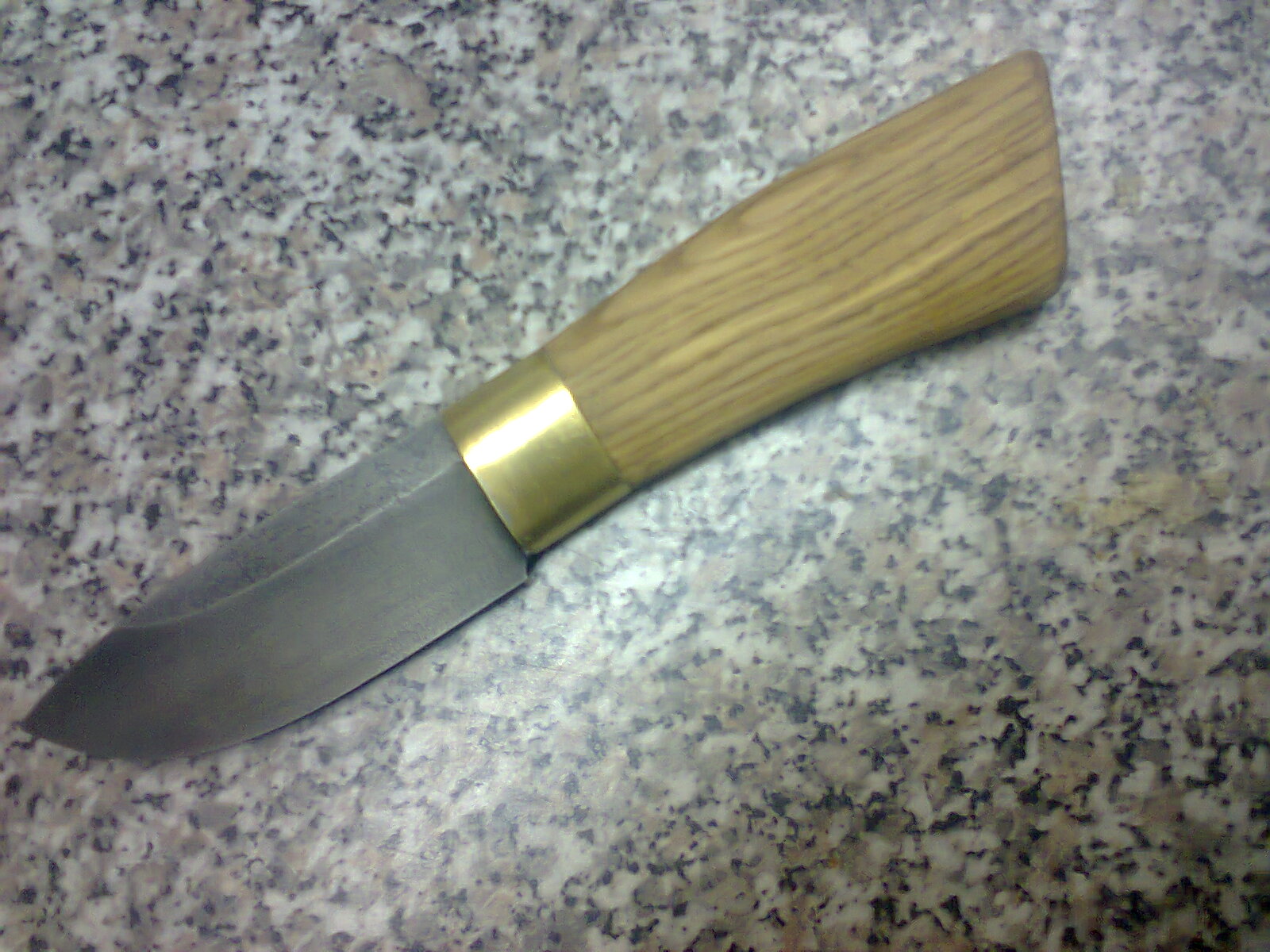 Рукоять длиннее лезвия, разве что для грибов или чистки картофеля пожалуй такой использовать? Смотрел на ютюбе как парень делает ножи из Р6М5, старого станочного сверла, был в шоке от характеристик такого ножа, тоже захотелось такой. Думаю любой рыбак и охотник мечтает о таком ноже, ибо покупные очень красивые, но тупятся и ломаются от небольшой ударной нагрузки. Не знаю что гласит уголовный кодекс в отношении длинны лезвия и самого факта самостоятельного изготовления, но всё равно хочется, хотя и не любитель ножей, но ношу швейцарский нож в барсетке, так ведь с самодельным не сравнишь, нет в нём ни тепла ни души, хотя вещь не дешевая и крайне полезная, одна зубочистка чего стоит! :-)