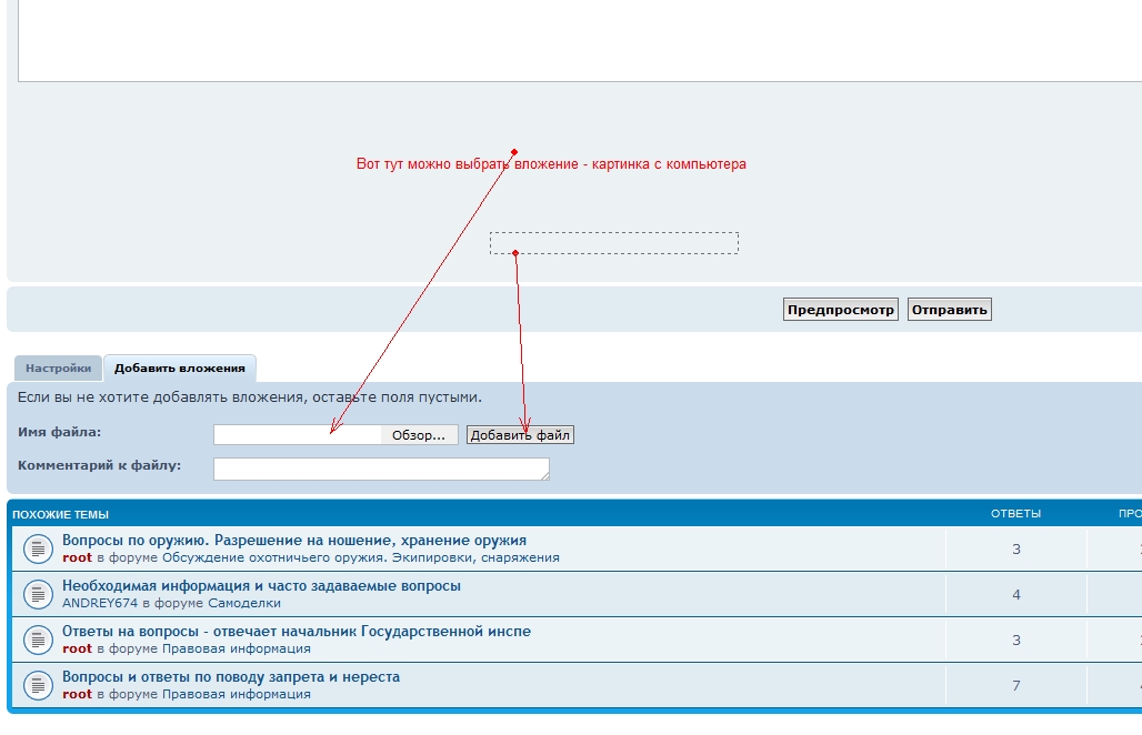 Вложения (фотографии с Вашего компьютера, можно добавить следующим образом):