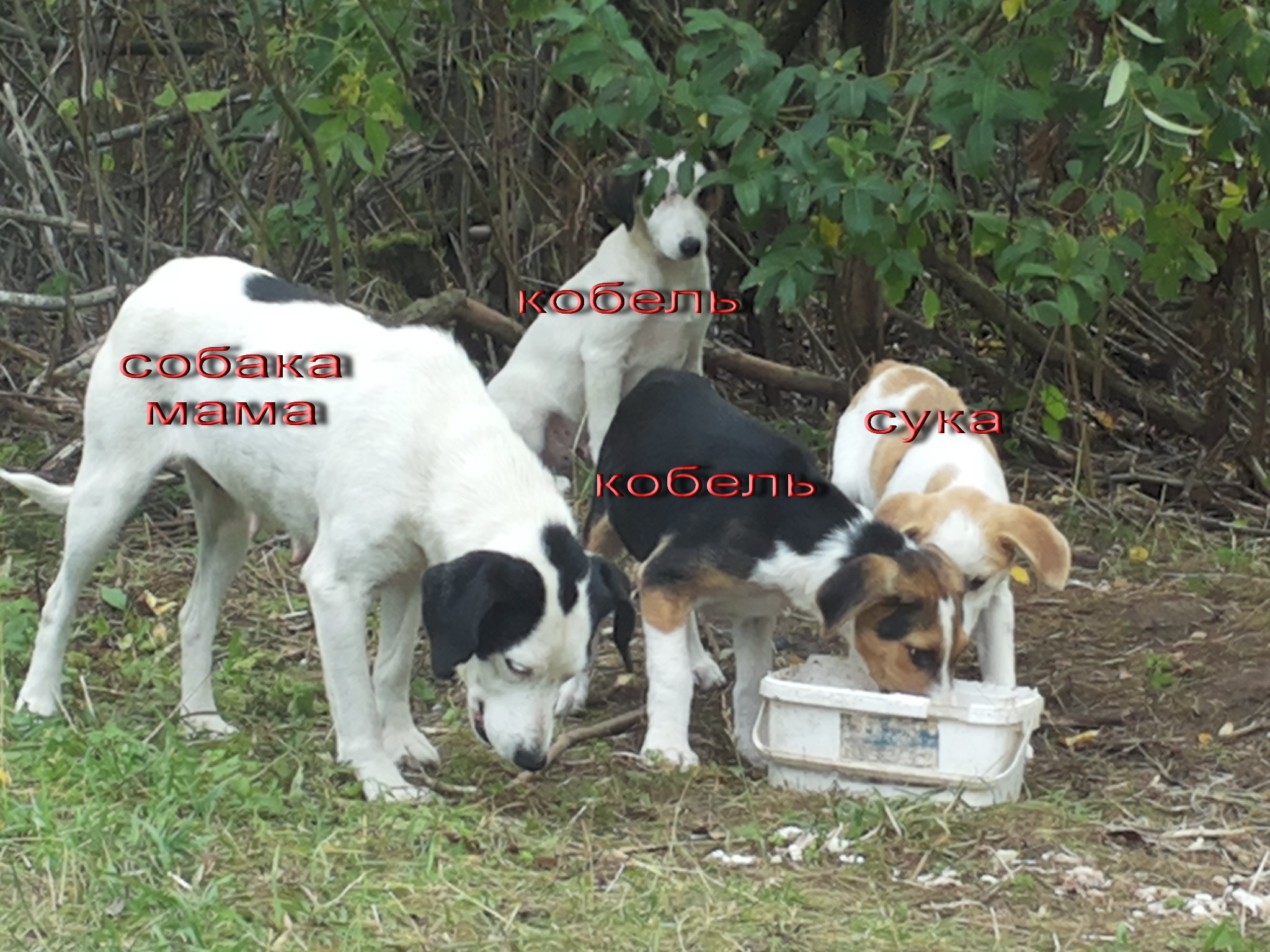 На Π΄Π°Ρ‡Π°Ρ… ΠΏΠΎΠ΄ ВитСбском собака, похоТая Π½Π° ΠΎΡ…ΠΎΡ‚Π½ΠΈΡ‡ΡŒΡŽ, принСсла Ρ‰Π΅Π½ΠΊΠΎΠ² Π² Π½Π°Ρ‡Π°Π»Π΅ Π»Π΅Ρ‚Π°. Π©Π΅Π½ΠΊΠΈ Π½Π°ΠΊΠΎΠ½Π΅Ρ†-Ρ‚ΠΎ Π²Ρ‹Π»Π΅Π·Π»ΠΈ ΠΈ Π΄Π°Π»ΠΈ сСбя ΡΡ„ΠΎΡ‚ΠΎΠ³Ρ€Π°Ρ„ΠΈΡ€ΠΎΠ²Π°Ρ‚ΡŒ. Π˜Ρ… Ρ‡Π΅Ρ‚Π²Π΅Ρ€ΠΎ, ΠΏΠΎ ΠΏΠΎΠ»Ρƒ Ρ‚Ρ€ΠΎΠ΅ ΠΊΠΎΠ±Π΅Π»Π΅ΠΉ ΠΈ ΠΎΠ΄Π½Π° сука. Пока ΠΎΠ½ΠΈ Π΄ΠΈΠΊΠΈΠ΅. Но собака-ΠΌΠ°ΠΌΠ° ΠΊ Ρ€ΡƒΠΊΠ°ΠΌ ΠΏΠΎΠ΄Ρ…ΠΎΠ΄ΠΈΡ‚. Π•ΡΡ‚ΡŒ Π΅Ρ‰Π΅ ΠΎΠ΄Π½Π° собака, Π²Ρ€ΠΎΠ΄Π΅ Ρ‚ΠΎΠΆΠ΅ сука, дикая совсСм ΠΈ ΠΏΠΎΡ…ΠΎΠΆΠ° Π½Π° Ρ€ΡƒΡΡΠΊΡƒΡŽ ΠΏΠ΅Π³ΡƒΡŽ Π³ΠΎΠ½Ρ‡ΡƒΡŽ, Π±Π»ΠΈΠ·ΠΊΠΎ Π½Π΅ ΠΏΠΎΠ΄Ρ…ΠΎΠ΄ΠΈΡ‚. ΠŸΠΎΡ…ΠΎΠ΄Ρƒ Ρ‚ΠΎΠΆΠ΅ какая-Ρ‚ΠΎ родствСнница собакС-ΠΌΠ°ΠΌΠ΅ ΠΈ Π΅Π΅ Ρ‰Π΅Π½ΠΊΠ°ΠΌ.