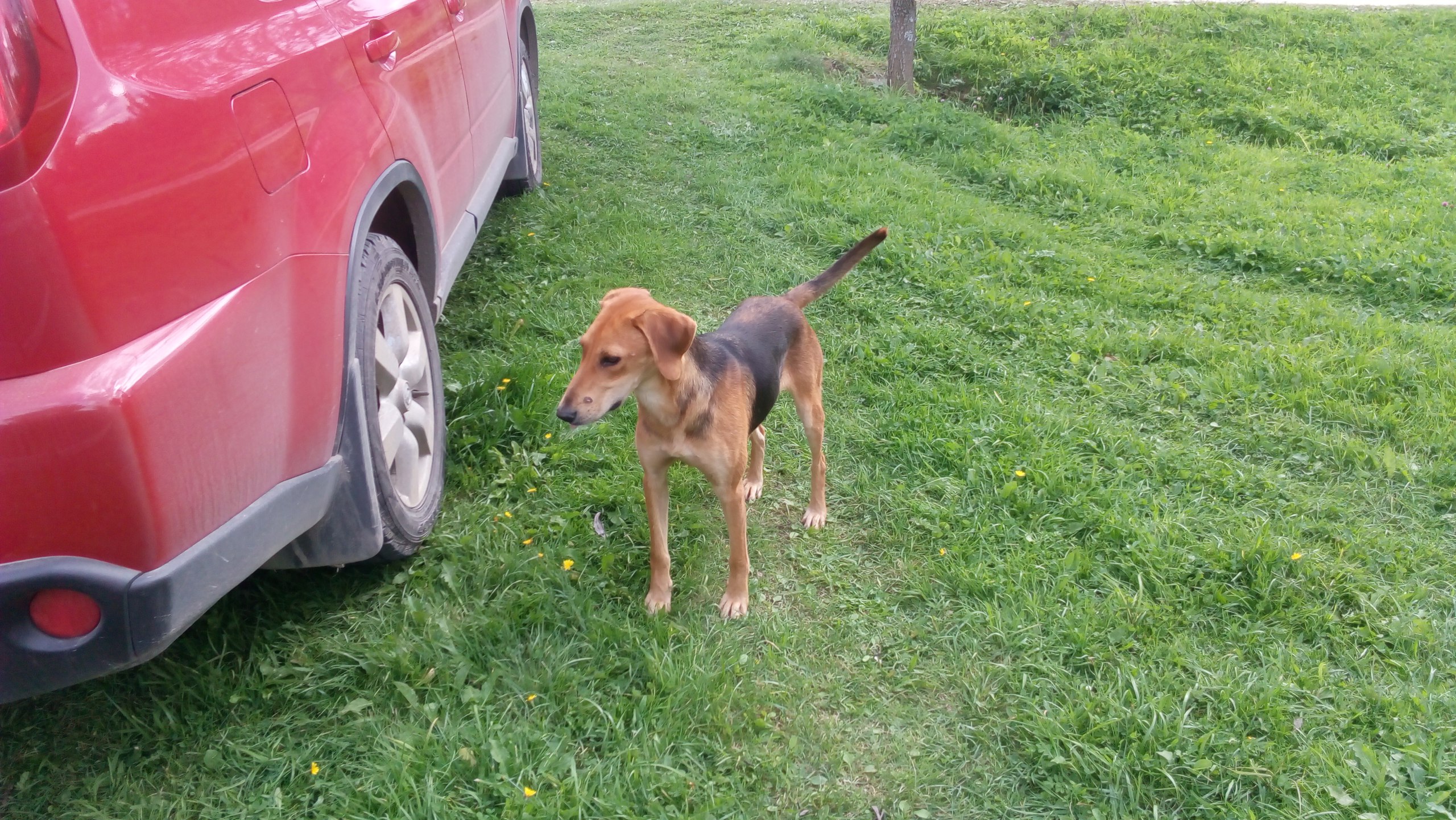 Найдена молодая русская гончая выжловка, черпачная, глаза темные. Прибилась к дому, 06.09.16г. клейма нет.