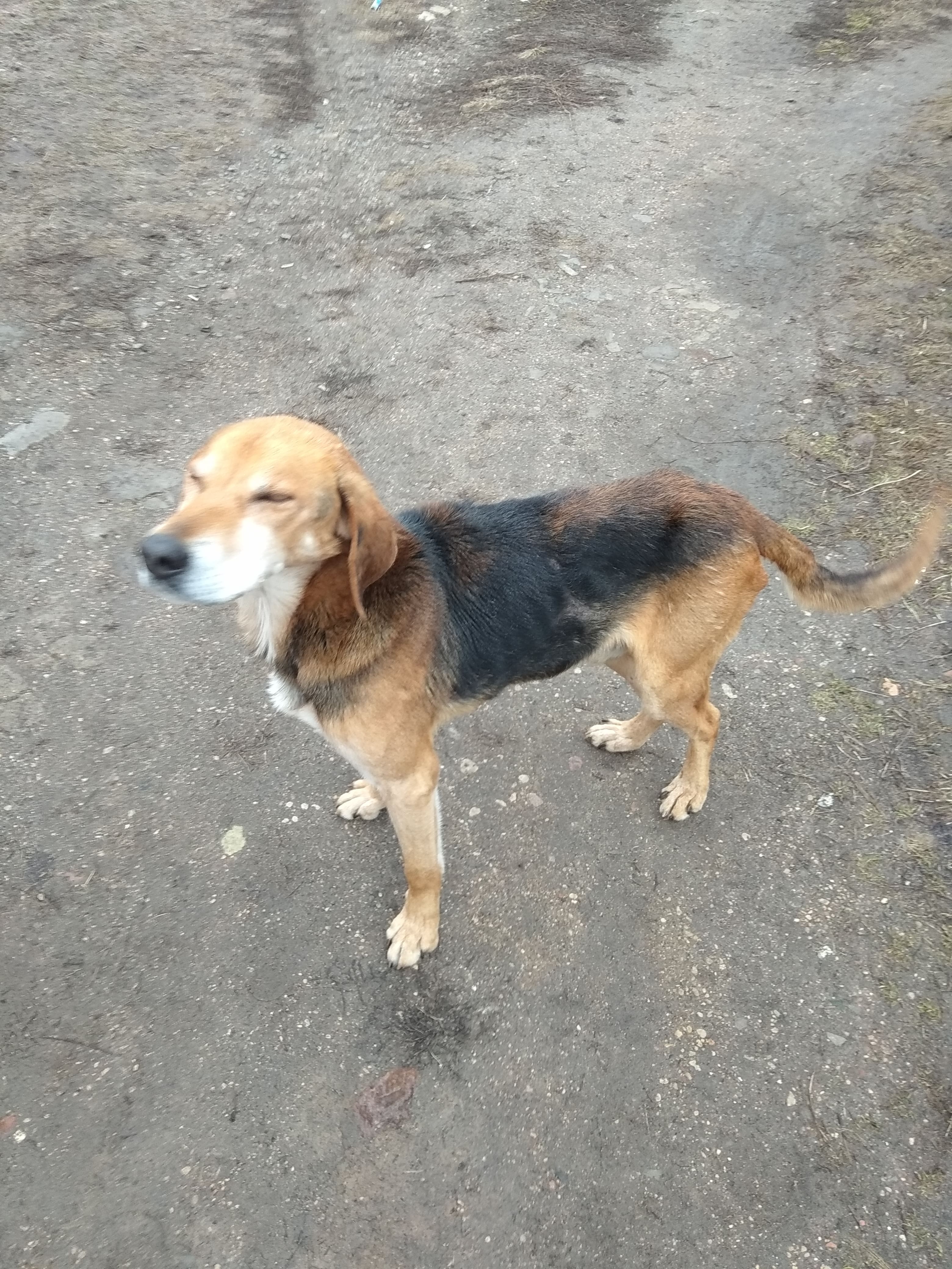 В посёлке Первомайский Лидского района несколько месяцев назад (первый раз замечен в январе) появился кобель. Похож на русскую гончую/метиса (не особо разбираюсь). В холке около 65 см. Пёс контактный, не агрессивный. Очень истощен. Может кто-то узнает собаку?
