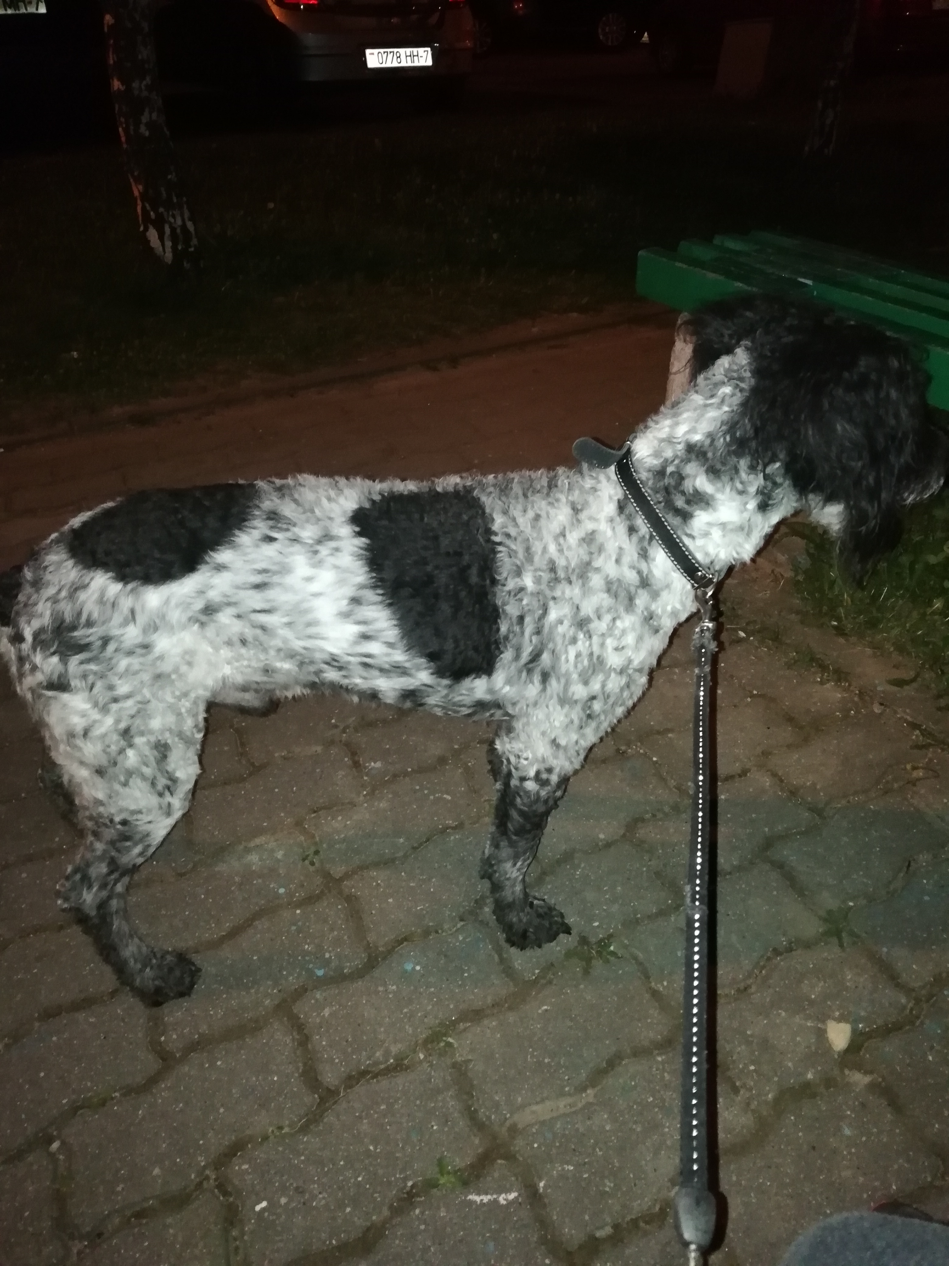 Здравствуйте! Нашли собаку, увязалась за течной сукой. Раньше в нашем районе никогда не видели. Ухоженный. Не агрессивный. Взяли на поводок.