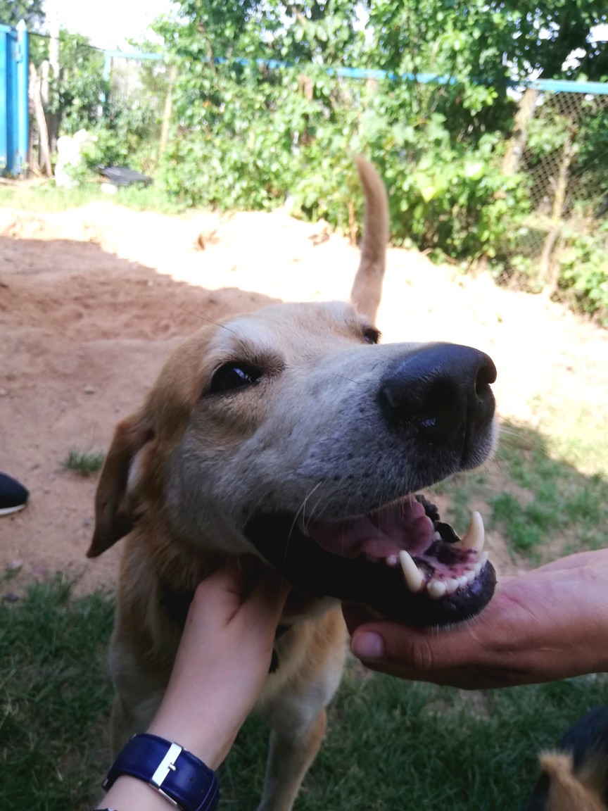 Возраст около 3-ех лет, на морде имеются шрамы, был истощен.