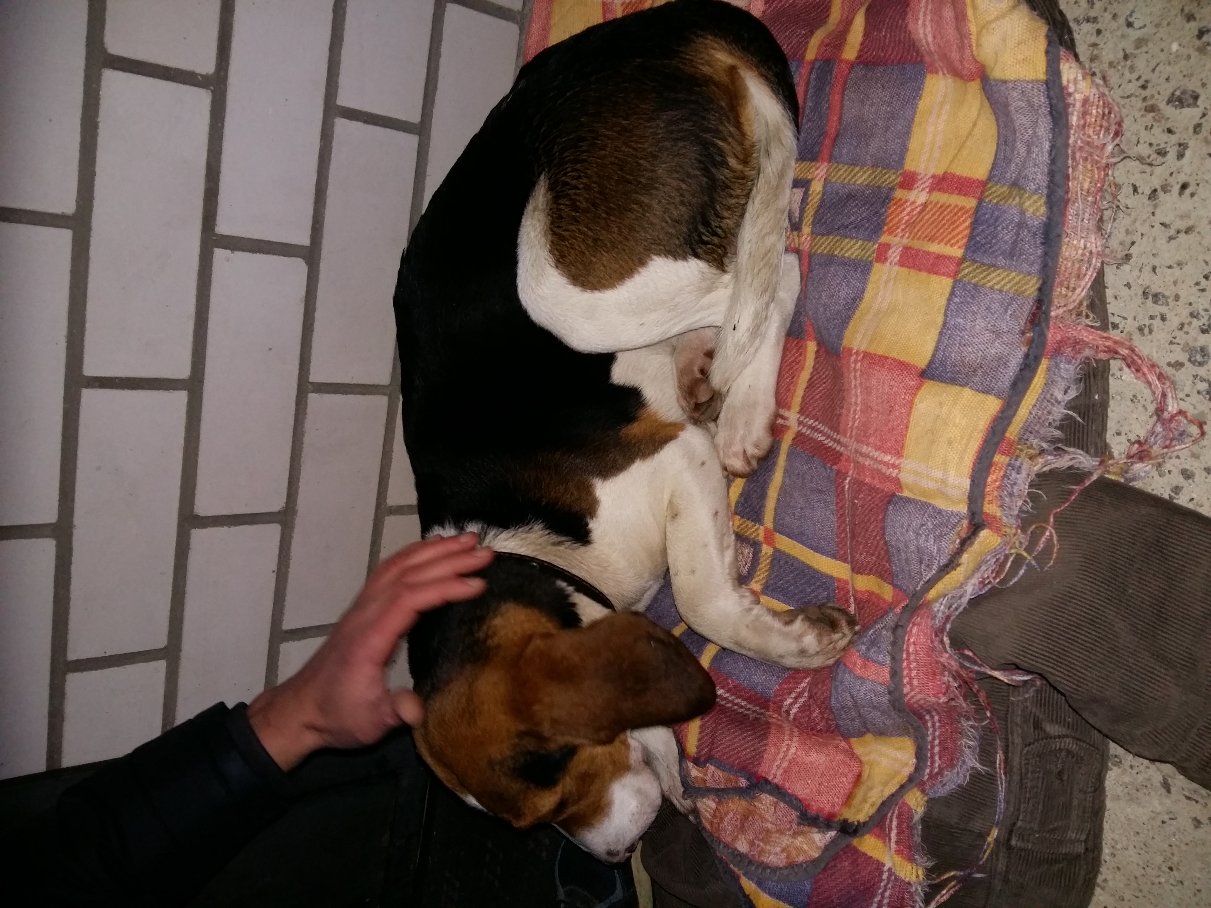 найдена в районе д.луковец, трасса р58 эстонская гончая, сука, щенная. на шее тонкий кожаный ошейник.