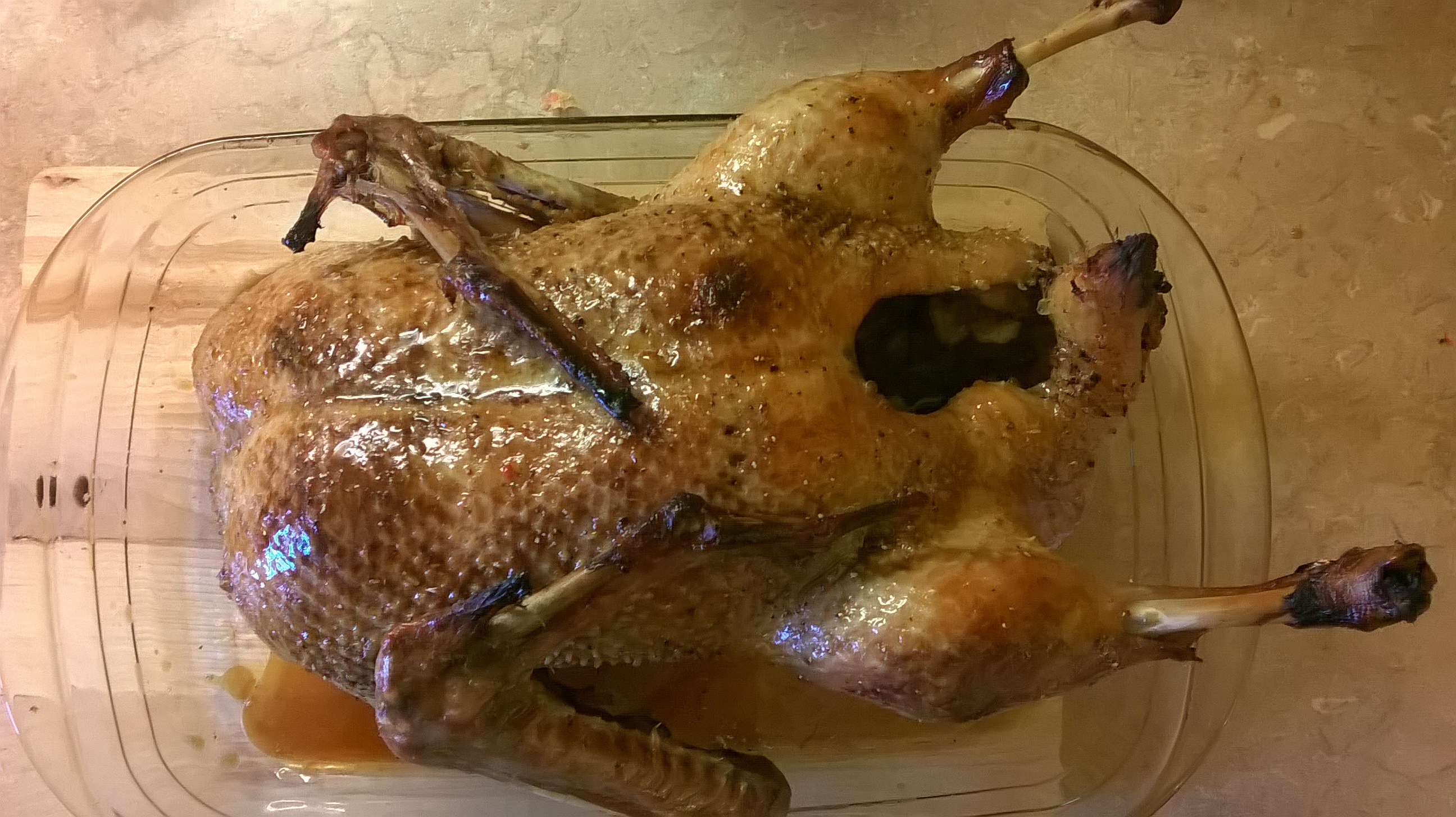 Далее достаем нашу птичку и намазываем ее медом, мед можно подогреть чтобы он проще мазался. Намазанная птичка стоит еще часа 2-3... лучше больше :) Но у нас сокращенный рецепт!