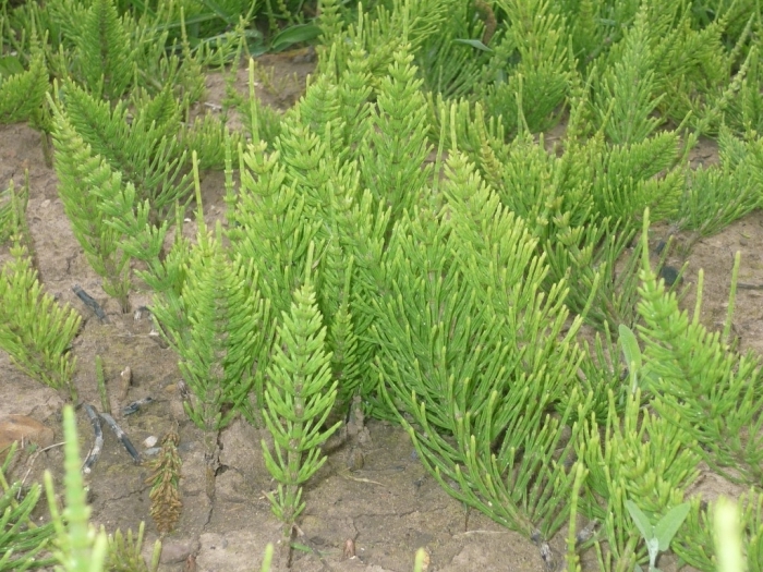 В долинах рек, вдоль песчаных побережий, на лугах в еловых, светлохвойных, березовых и смешанных лесах растет хвощ полевой (Equisetum arvense). Весной из земли появляются его бледные спороносящие стебли, похожие на плотно расставленные стрелы с коричневыми наконечниками, а месяц спустя их сменяют зеленые «елочки», не жухнущие до самой осени. Это странное древнее растение съедобно. В пищу используют молодые весенние спороносящие побеги — из них готовят салат, варят суп или едят сырыми. Можно есть и земляные орешки — клубеньки, вырастающие на корневищах хвоща, — они богаты крахмалом, на вкус сладкие и пригодны в пищу сырыми, печеными или вареными. Трава хвоща («елочки») богата ценными лекарственными веществами и издавна находит применение в медицине. Обладая кровоостанавливающими и дезинфицирующими свойствами, настой (20 граммов хвоща на стакан кипятка), порошок или сок свежей травы используется для лечения гноящихся и резаных ран. Хвощовым настоем полощут горло при ангине и воспалении десен. Все вышесказанное относится только к хвощу полевому; другие виды хвощей содержат алкалоиды.