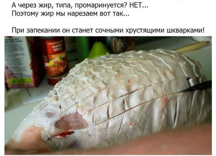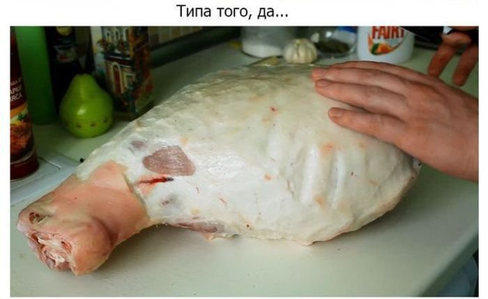 Если в рецепте будет участвовать свинина, выбирайте шейку, корейку или сочную часть свиного окорока. Это не жирное, но и не слишком постное мясо. Жирное свинина тут явно будет лишней, поскольку с майонезом она превратит блюдо в нечто несъедобное. Постное мясо может быть излишне суховатым. Свинина должна быть окрашена равномерно. Желтый цвет жировых прослоек крайне нежелателен.