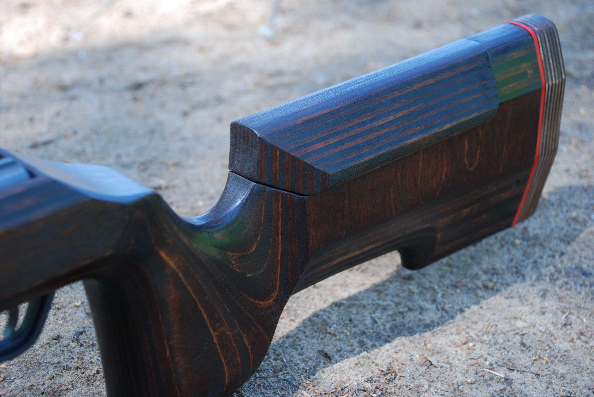 )-чуть округлил бы острые грани на затыльнике и сделал хотя бы небольшую впадину под плечо.