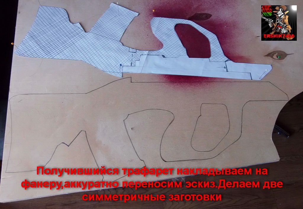 Выпилил три заготовки из 15-ти мм фанеры.Две боковины и серединку(заштриховано на рисунке).Пока всё под Браунинг.Вот: