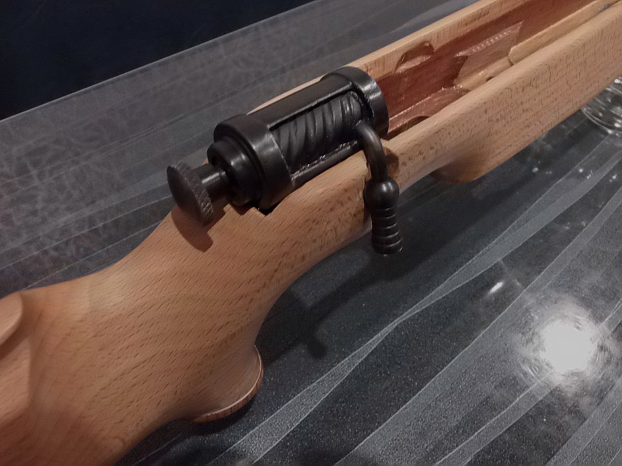 Для правоохранителей,которым возможно не захочется изучать полностью обзор и сделают быстрый вывод!Та загагулина,которая похожа на затвор-это всего лишь иммитация его!Никакого функционала она не несёт,а выполнена лишь для антуража и неподвижна!Винтовка так и осталась пневматической в кал.4,5мм с дульной энергией согласно нашего законодательства,никаких изменений в её ТТХ не вносилось!!!