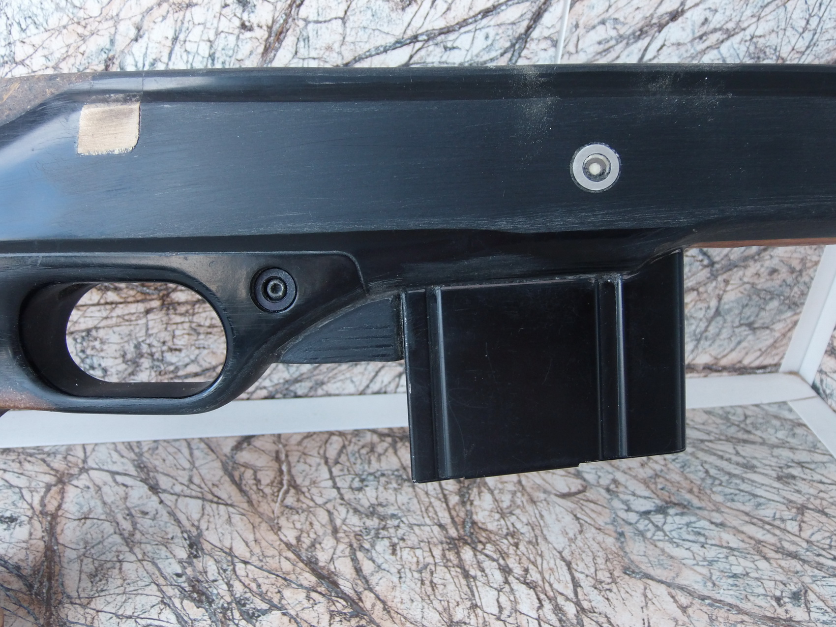 Интересная на мой взгляд работа, эту новую задумку хотелось сделать не хуже той. Ложа на момент покупки была в таком виде. Регулируемая по высоте щека приклада и надёжный крепёж в прикладе стальных маховиков регулировки (внутри приклада стальные втулки) конечно обрадовали: