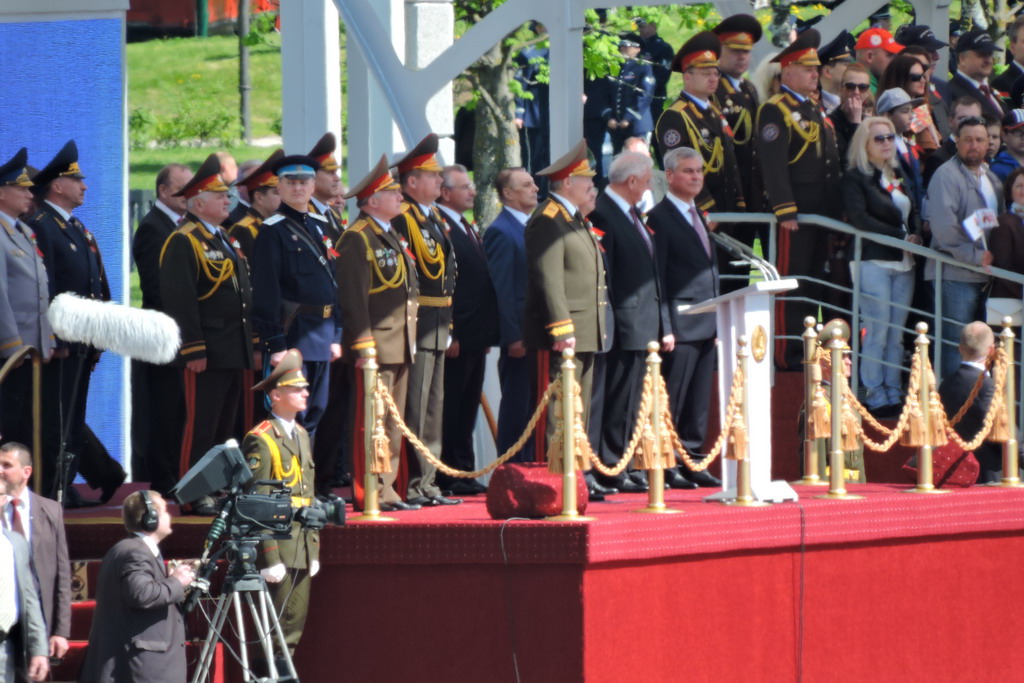 Нормально я сходил на парад и фотик пронёс без проблем, хотя до этого было в газете написано "проносить только фотики с объективом не больше 4см" - а в диаметр или в длину не указано. Пошол на легке без сумок, куртки и т.д. Прошол через рамку - попросили показать фотик и сфотографировать землю - показал сфотографировал - пропустили. Ну думаю пронесло :-) - зум не попросили выдвинуть. Смотрю вокруг куча народу с зеркалками с телевиками - думаю ну тогда нормально не один я такой. К дороге ломится не стал - нашол горочку повыше, ну и 2,5 часа ждунства начались. По началу народа было не густо.