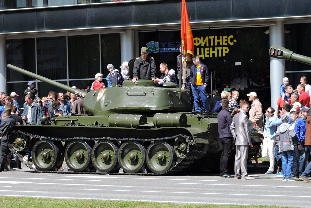 Потом поехала техника антикварная - сразу эксперды игры World of Tanks в толпе обозначились :-) с криками я такого прокачал..., я на таком воевал ...