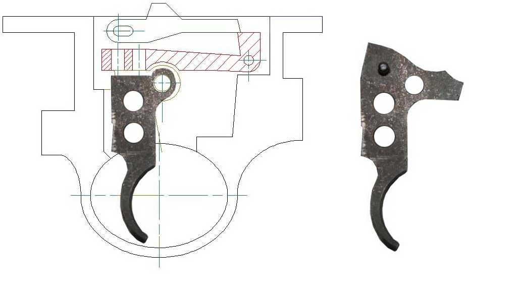 Тут вобщем марадеовский УСМ подошол, только в деревяху не влазит, я прикинул как с минимумом затрат мародеровские потроха интегрировать в кубиковский УСМ .Шептало и рычаг новые надо, дыдочки под оськи новые и оськи тоже, крючек спусковой обрезать и будет 2-х ступенчатый приятный спуск как на марадере. Надо только эрозионная резка метала.