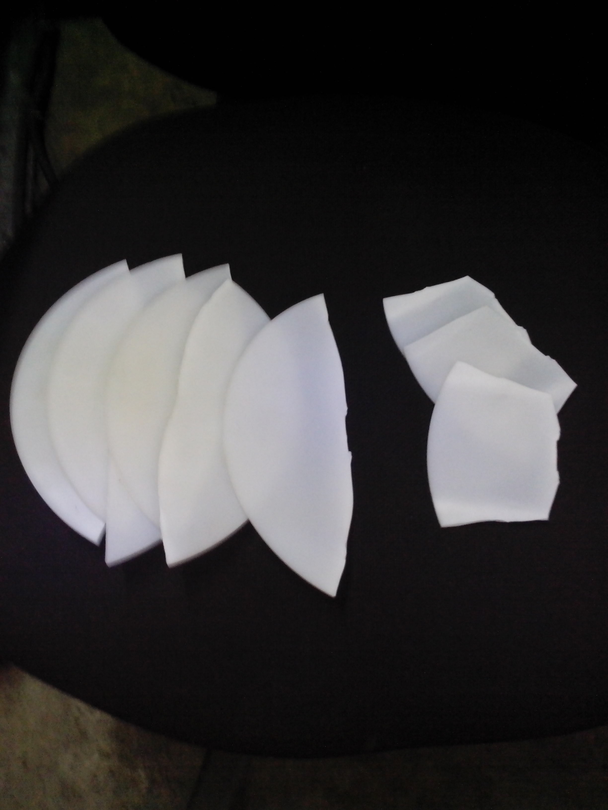 Получаются вот такие куски-большие идут под затыльник любого размера,маленькие-на торцы рукоятей: