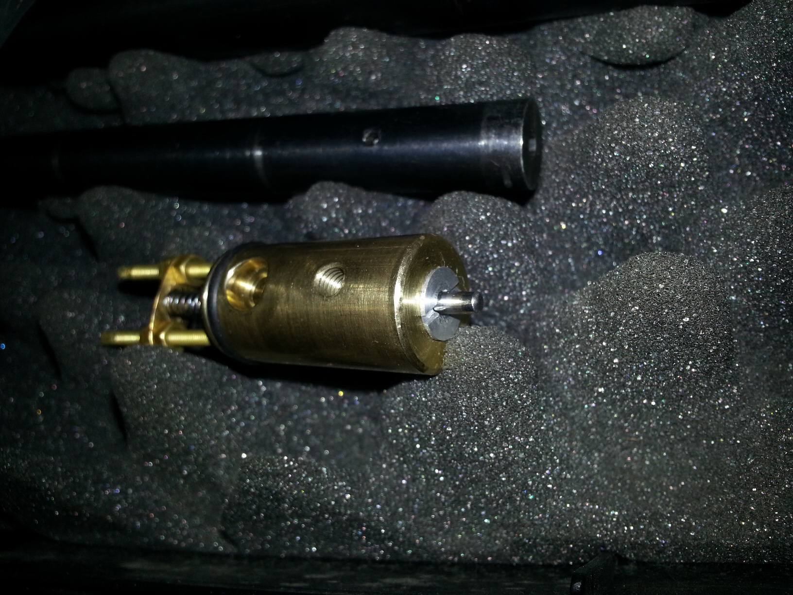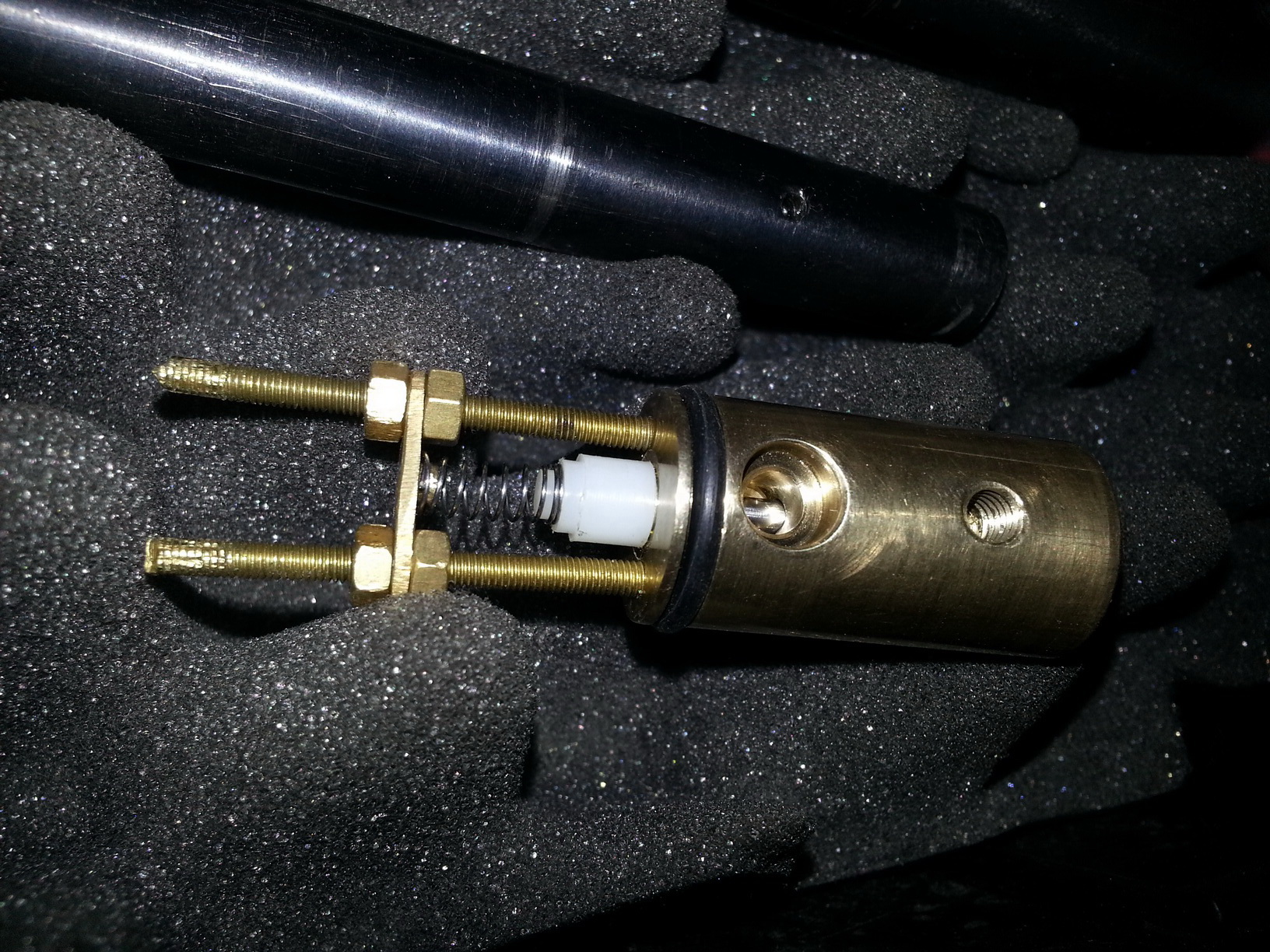 Цельный блок клапана QB 79/78 с герметизацией штока и легким капролоновым клапаном. А так же ударник из бронзы (затонирован ради эксперимента над бронзой), весом 24гр.