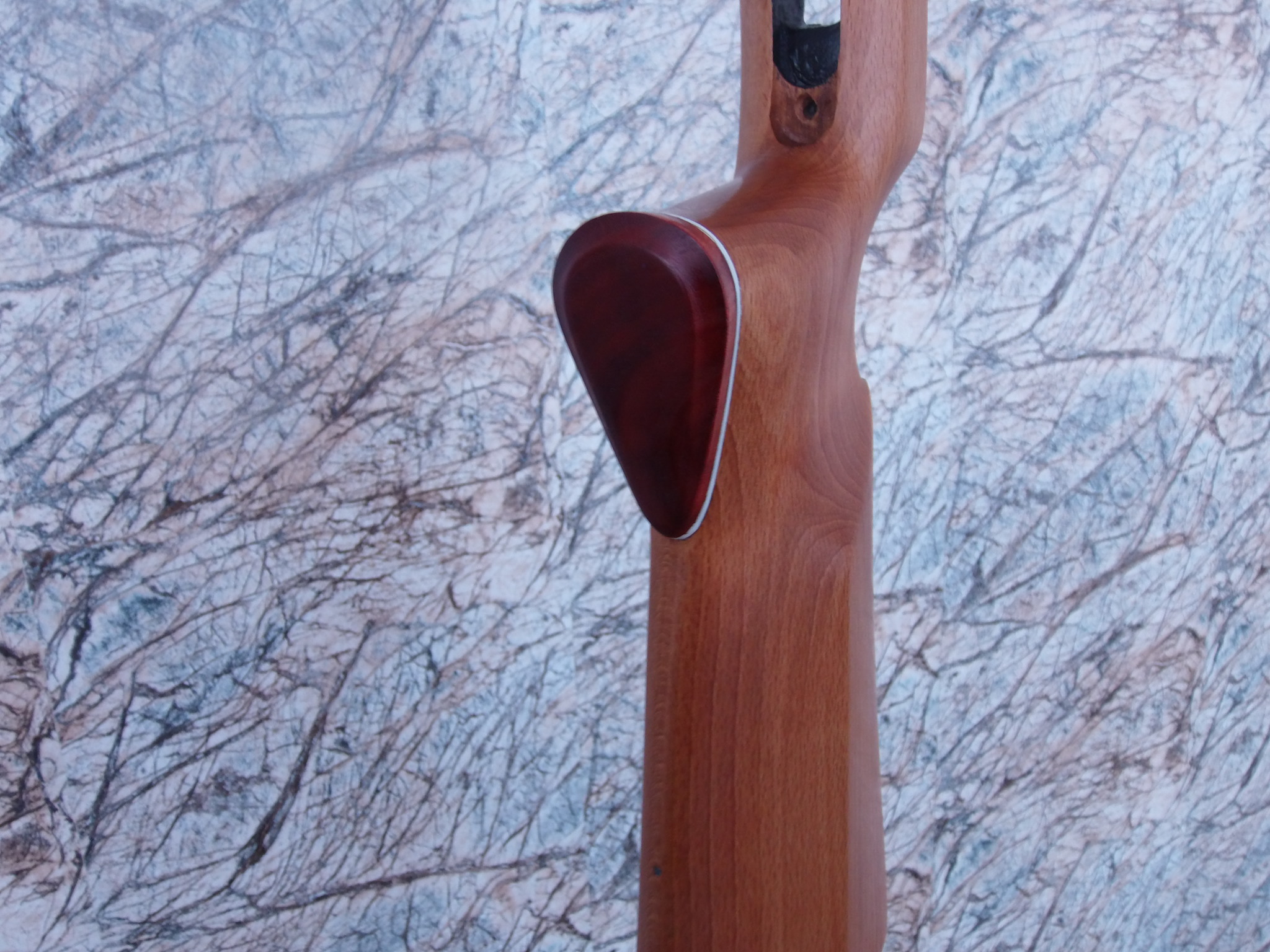 Очень здорово льняное масло вскрыло всю богатую текстуру бука.Каждый слой,каждая рисочка была видна! Неплохо вписалось в композицию и красное дерево. Стало ещё богаче и интереснее.Снова отнёс в кладовку и сушил первый слой ровно неделю.Затем покрыл ложу ещё тремя слоями льняного масла с интервалом в сутки.Последний нанесённый слой сушил уже дней 10.Требовалось основательно высушить его перед нанесением «Дэниш Ойл»…