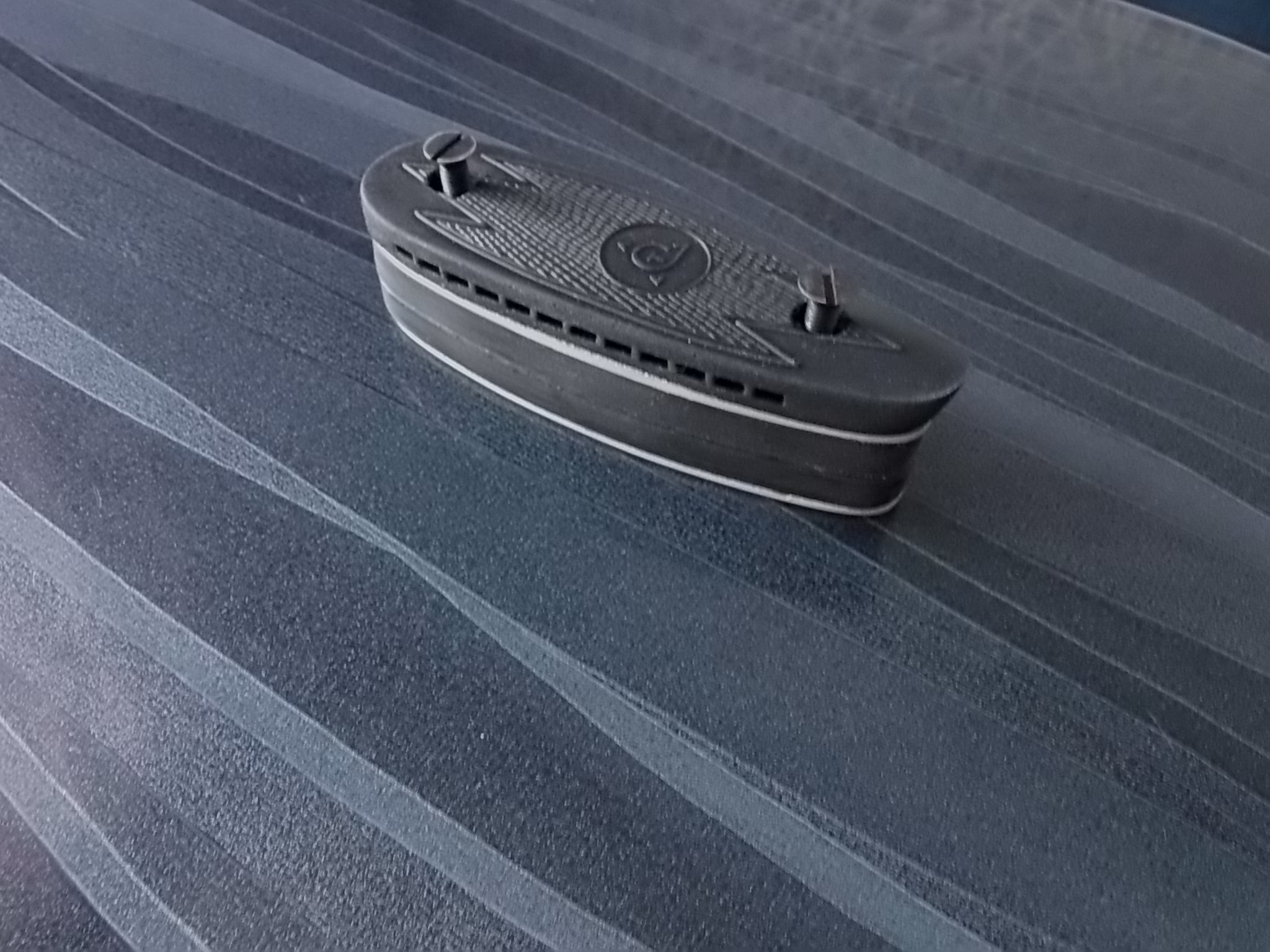 Теперь можно было заняться доработкой затыльника приклада.Как говорил-он был, но не в полной комплектации.Не хватало лицевой детали. Разобрал я его на две детали-еле держались эти детали затыльника между собой на каком-то хиленьком клею.Почистил,вымыл мылом. Для лицевой детали купил ТОЗовский тонкий затыльник.Он практически идеально совпадал с почищенным основанием. Потребовалось лишь слегка доработать краешки наждачками.Крепёж совпал!!!Вот:
