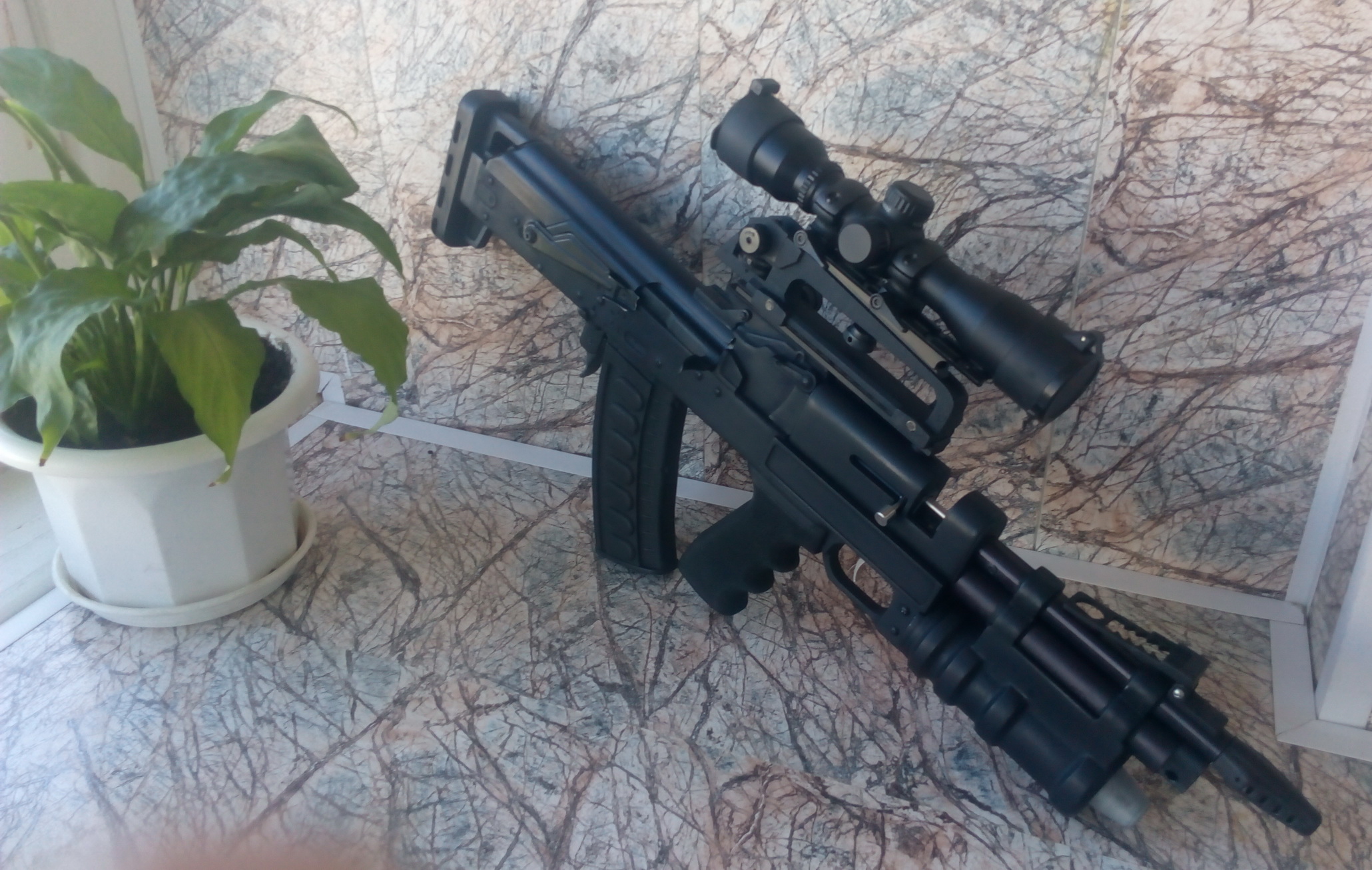 Магазин фиксируется отлично-с замком долго возился,но сделал чтобы всё было чин чинарём! Ну и вот! И этот модуль несёт какую-то функциональность! Наличие запасного барабанчика снаряжённого,позволит съэкономить время на перезарядке. А наличие запасного баллончика с кислотой в подствольнике даст возможность ещё больше пострелять!К слову с одного баллончика пулей кал.5,5мм и весом 0,87г мне удавалось сделать более 40 выстрелов.