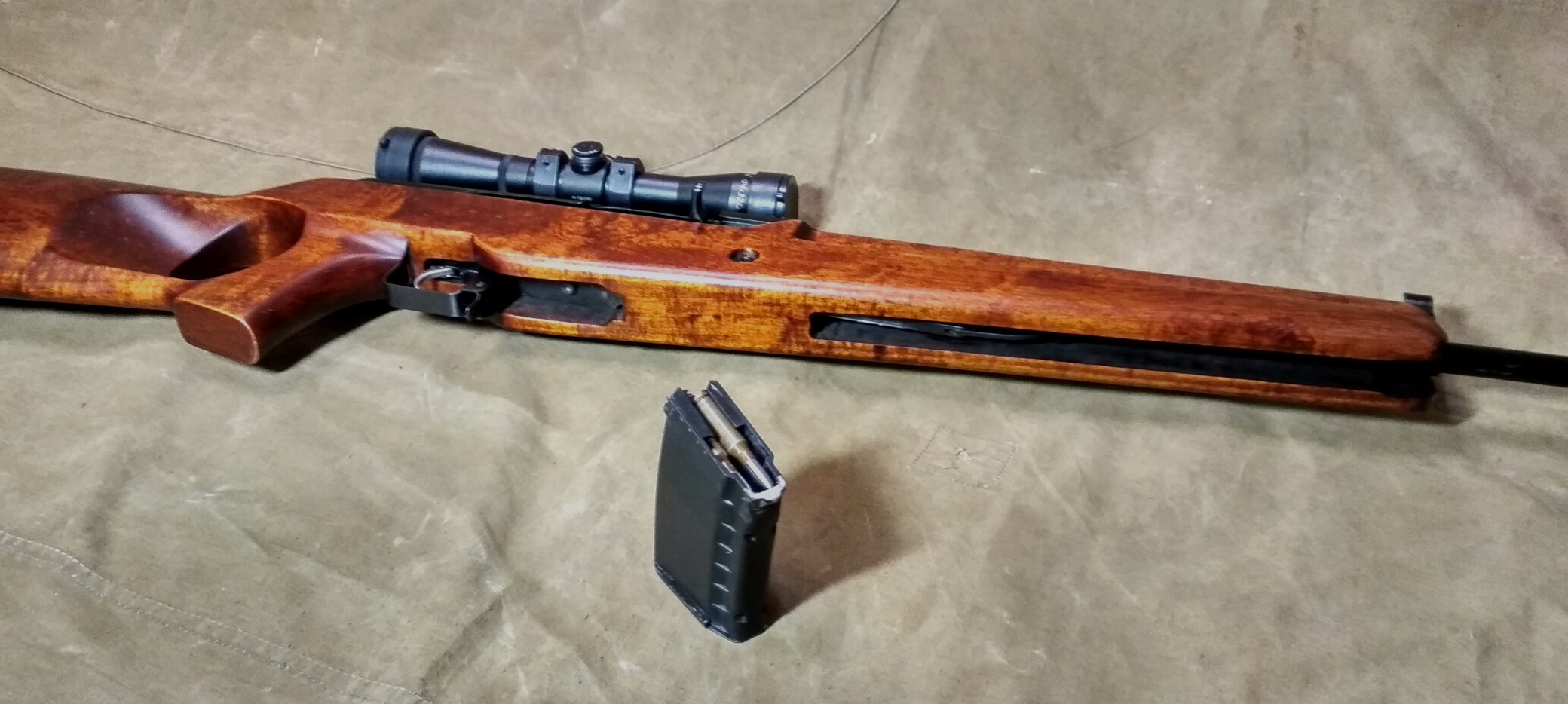 Настрел уже более 200 выстрелов. Все работает надежно и кучность благодаря большой массе и длине карабина изумительная!