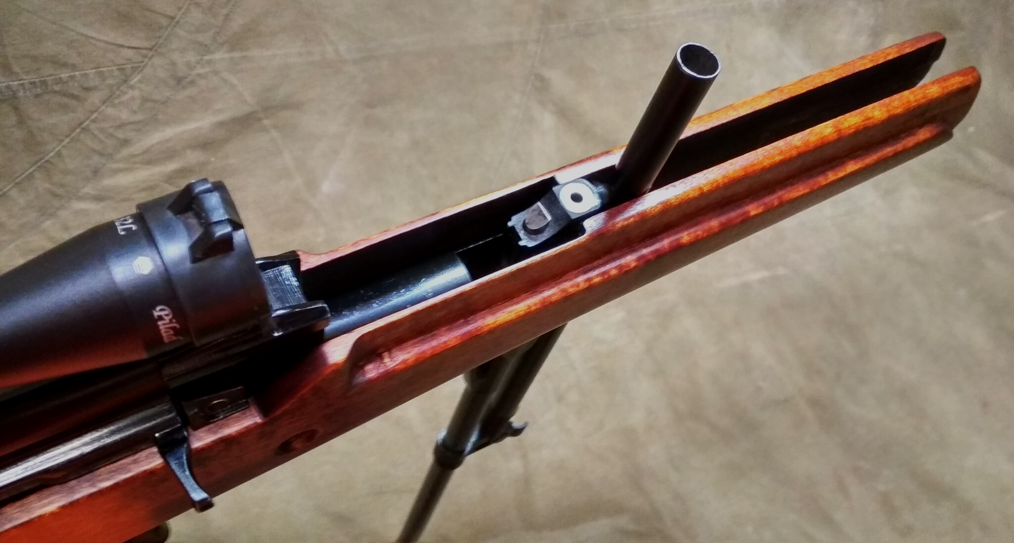 Ну, и, конечно, в подтверждение того, что сапожник должен быть без сапог, я не нарезал замечательную ромбическую насечку на ложе. Как обычно делал это на своих и чужих «буратинках».