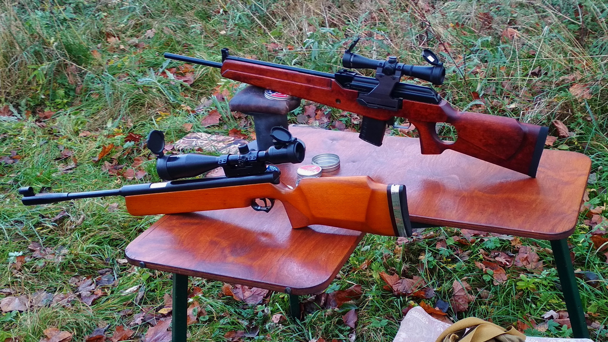 Несколько раз встречал в тематической телепередаче охотничий карабин, который меня зацепил сочетанием классического дерева и АК-подобной начинки. Это был охотничий карабин Вепрь Супер, имеющий разные калибры и модификации. Так как у меня завалялись несколько лишних деталек от пневматической винтовки «Юнкер-3» (условная копия АКС-74) и имелся сам Юнкер для снятия размеров, то было решено попробовать объединить их в стилизацию карабина Вепрь. После наброски чертежей и анализа в теории должно было все получиться, что в последствии и подтвердилось результатом. Проект несколько раз замораживался на длительный срок из-за отсутствия важных деталей и потери энтузиазма. Но благодаря помощи моих соратников в недостающих элементах проект был завершен. Виталий (ershik7498) и Руслан (Felix) - спасибо Вам огромное!
