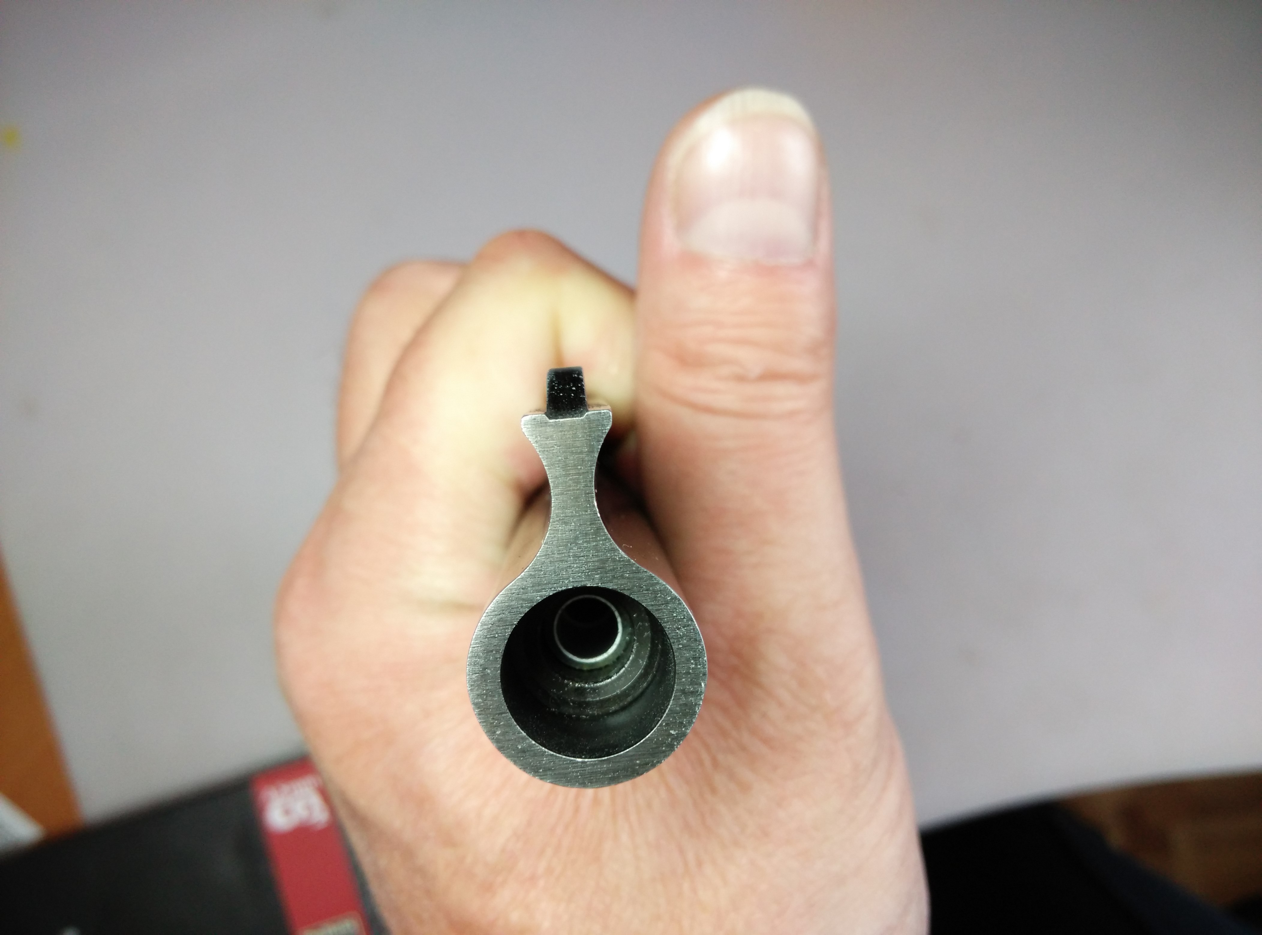 Шомпол из латуни, но этот с другого девайса, на Смите будет по длиннее. Кстати, понял почему русские офицеры, а конце 19-го века, так ратовали за перевооружение на наган. Носить в кобуре Смит, а каждый день, а в бою, то еще "удовольствие". Несмотря на удобство пере заряжания его по сравнению с Наганом, победил все таки вес и принцип запирания канала ствола в нагане. Цитата: "Отличительной чертой нового образца был набегающий на казенную часть ствола барабан, обеспечивающий полную обтюрацию пороховых газов".