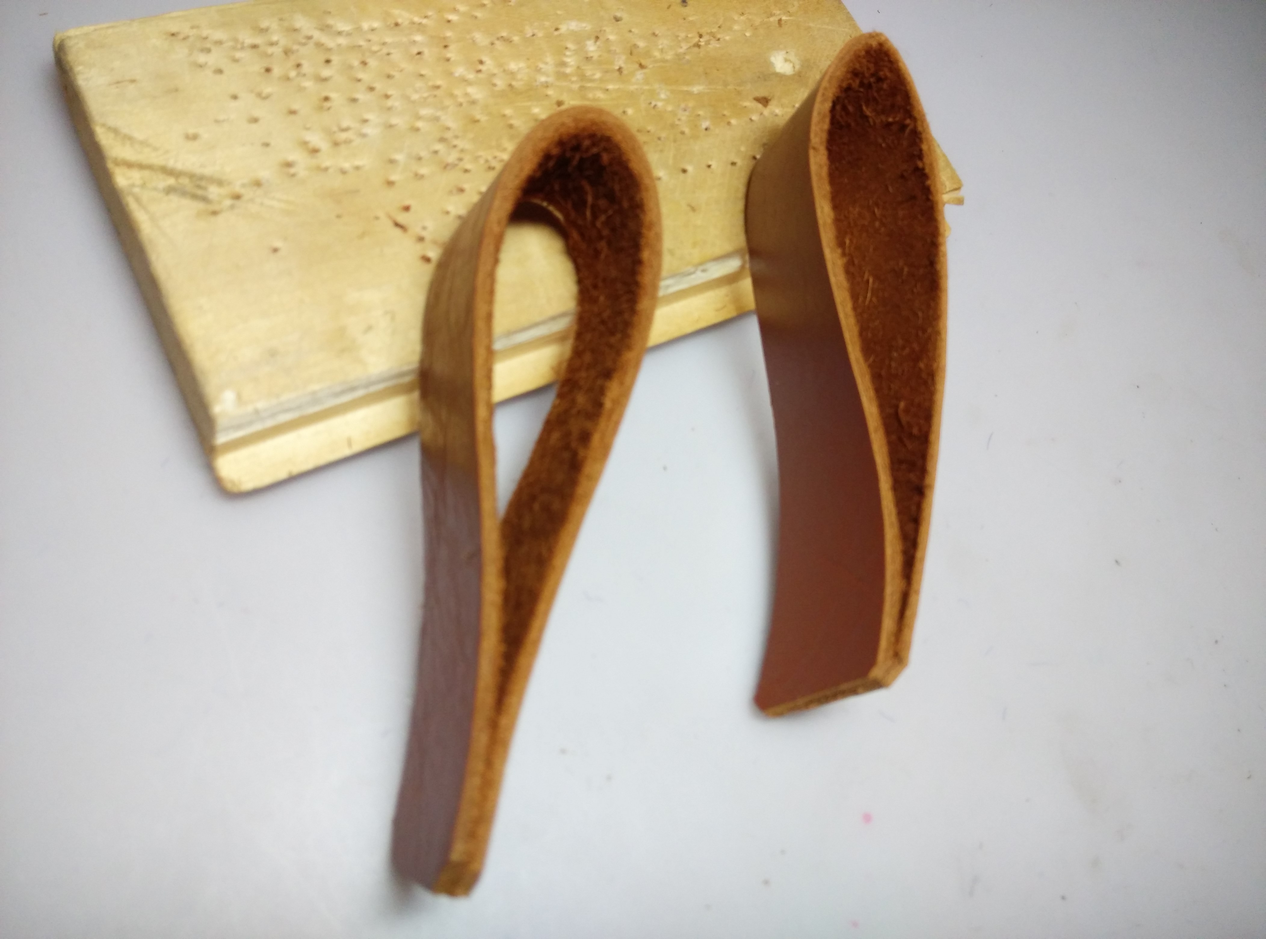 Шлейки для портупеи делались из более мягкой кожи, того же коляра, у "продавалов" это все есть! Хлястик из толстой кожи, так надежнее для фиксации верхней части и проще при открывании кобуры.Хлястики предворительно склеивались, потом пришивались.