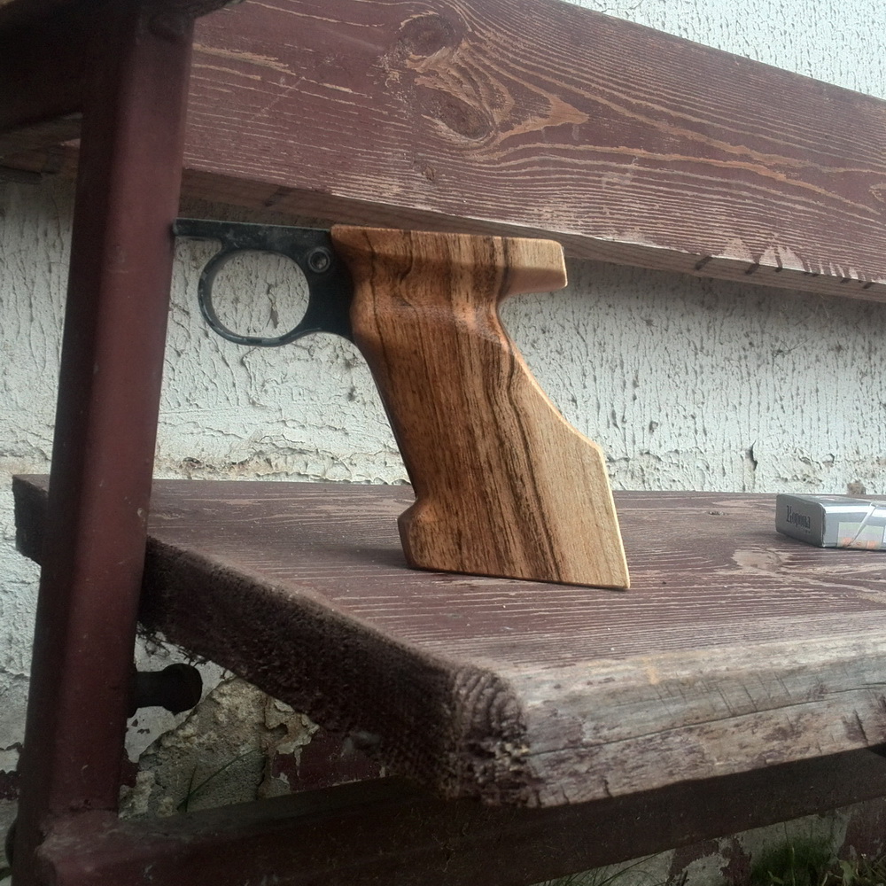 Стесняюсь спросить...А разве предлагаемые Честером рукоятки классифицируются как рукоятки к матчевому пистолету?Думаю они для "крысы",сделаны на замену того убожества которым наделён пистолет в стоке.С Сашкиной рукояткой он не станет спортивным,но то что удобнее удерживать "крысу" будет в руке,да к тому же комфортно-этого не отнять.Если же при покупке рукоятки кого то не устроит наклон полки под большой палец,думаю получится договориться с Честером о скидке,а сам рашпиль в руки,и подгоняй себе полку или ещё что под руку.Доработал наждачкой,получил что нужно...