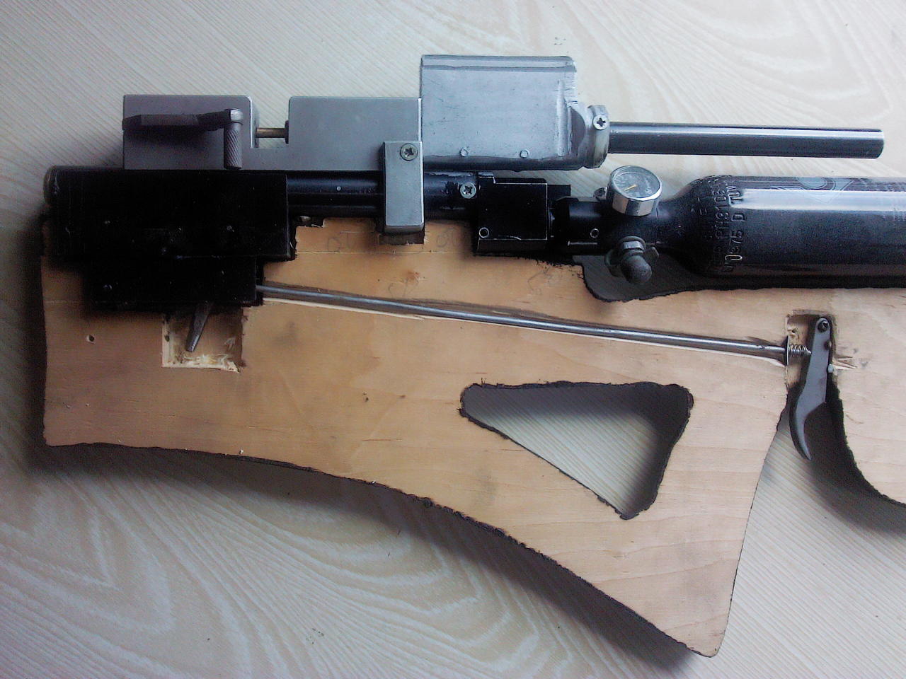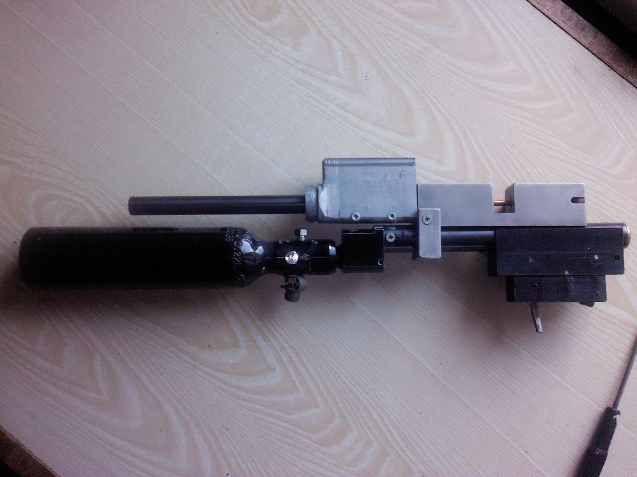 13.Полуфабрикат_2 Компакт на ЗиП - 300BYN - пейнтбольный баллон 220см3 с редуктором, эксцентриком на QB и трубой от нее же, клапаном плоскость-плоскость, биатлонной коробкой и коротким стволом (вроде LW 4.5). Без оптики и барабашки.