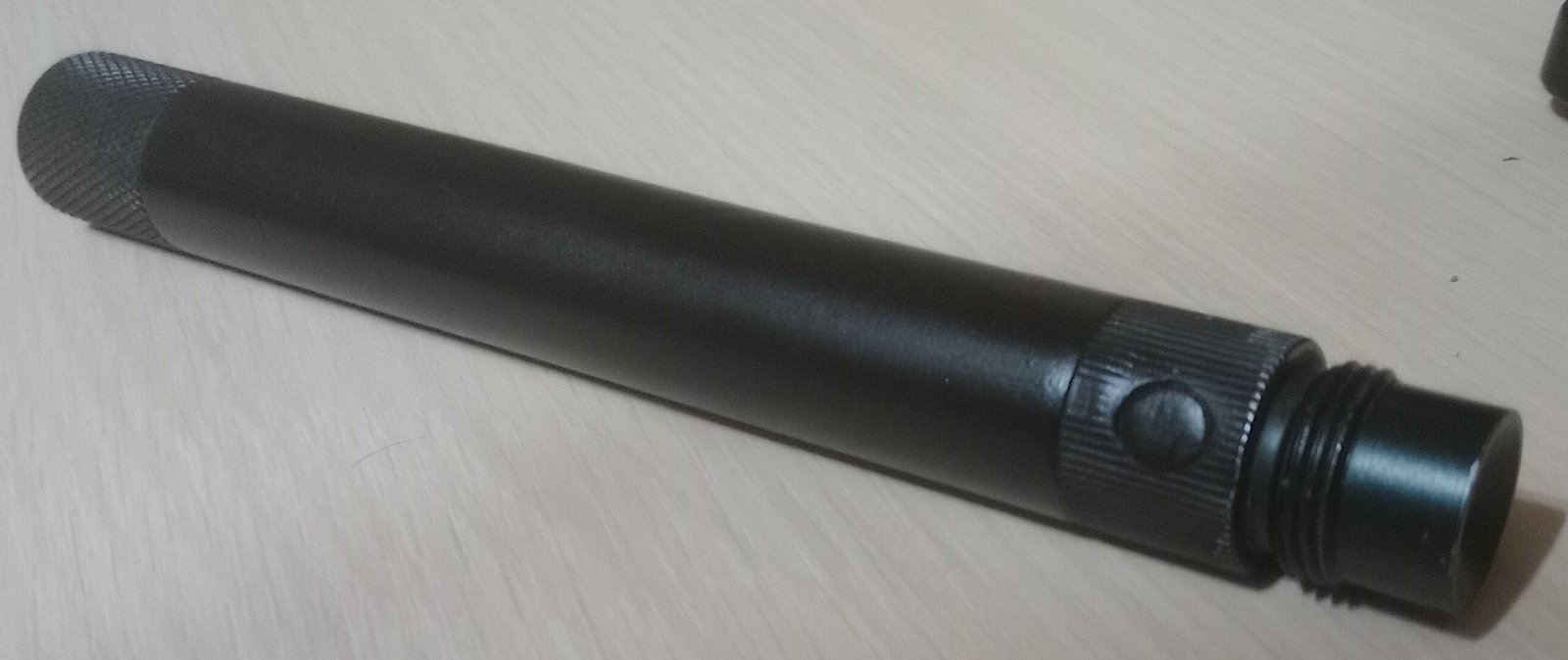 Передок стоковой пробки запрессован на ЭДП в тонкостенную стальную трубку,для исключения проворота заштифтовано. Впереди в трубке нарезана резьба. Выточена стальная заглушка с ответной резьбой,на ней накатка для уверенного хвата при закручивании этой длинной пробки для прокола баллончика СО²,имеющей некоторую имитацию подствольного трубчатого магазина. Трубка заворонена на горячую,заглушка-хол.воронение. Потому оттенки воронения имеют отличие.Родную пробку чуть надо подкрасить на горячую чёрной матовой аэрозолью. Разумеется всё выполнено в одном диаметре,отталкиваясь от наруж.диаметра стоковой пробки. Закручиванию ничего не препятствует,по стволу не трёт и баллончик накалывает "как бабушка просила".