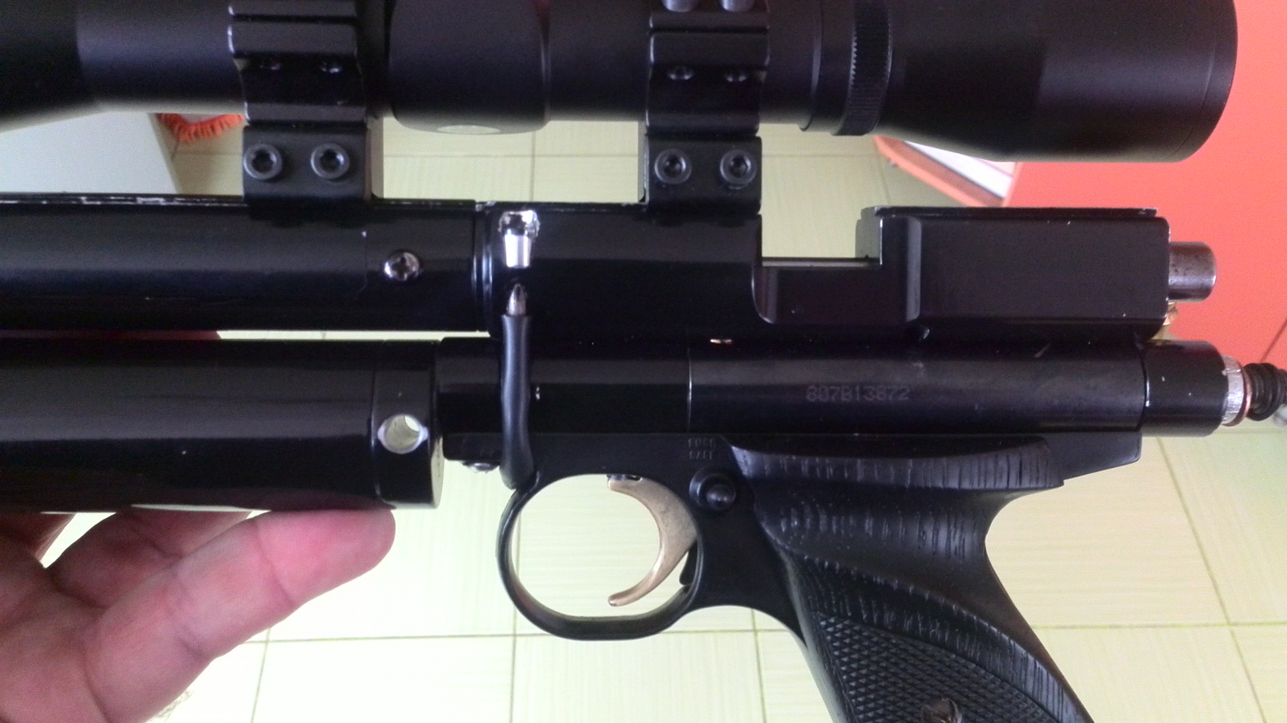 Да кстате есть к нему прикладик самодельный накручивается на винт поджима пружины обмотан лентой комуфляжной :ti_pa:
