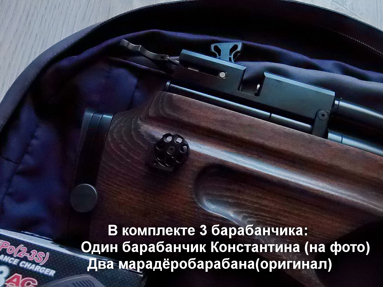 11)Два марадёробарабана ОРИГИНАЛ в комплект дополнением к Костиному. Калибр 5,5мм.Как и барабан Константина,прекрасно работают в этой ствольной коробке.Отличие-марадёры проворачиваются автоматически при взводе,барабанчик Кости необходимо переводить вручную.Но это для вдумчивой стрельбы очень-очень полезно!!!Да и работает он ну оооооочень приятно.Качество изделия Константина на 5+!!!