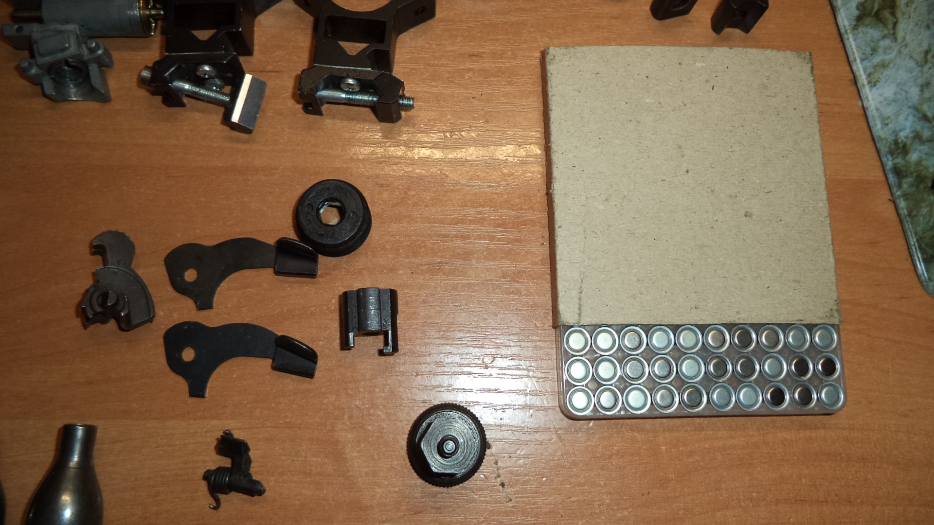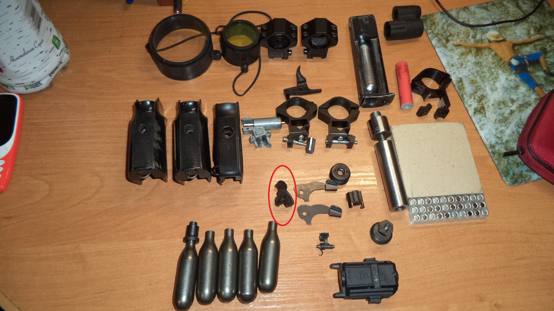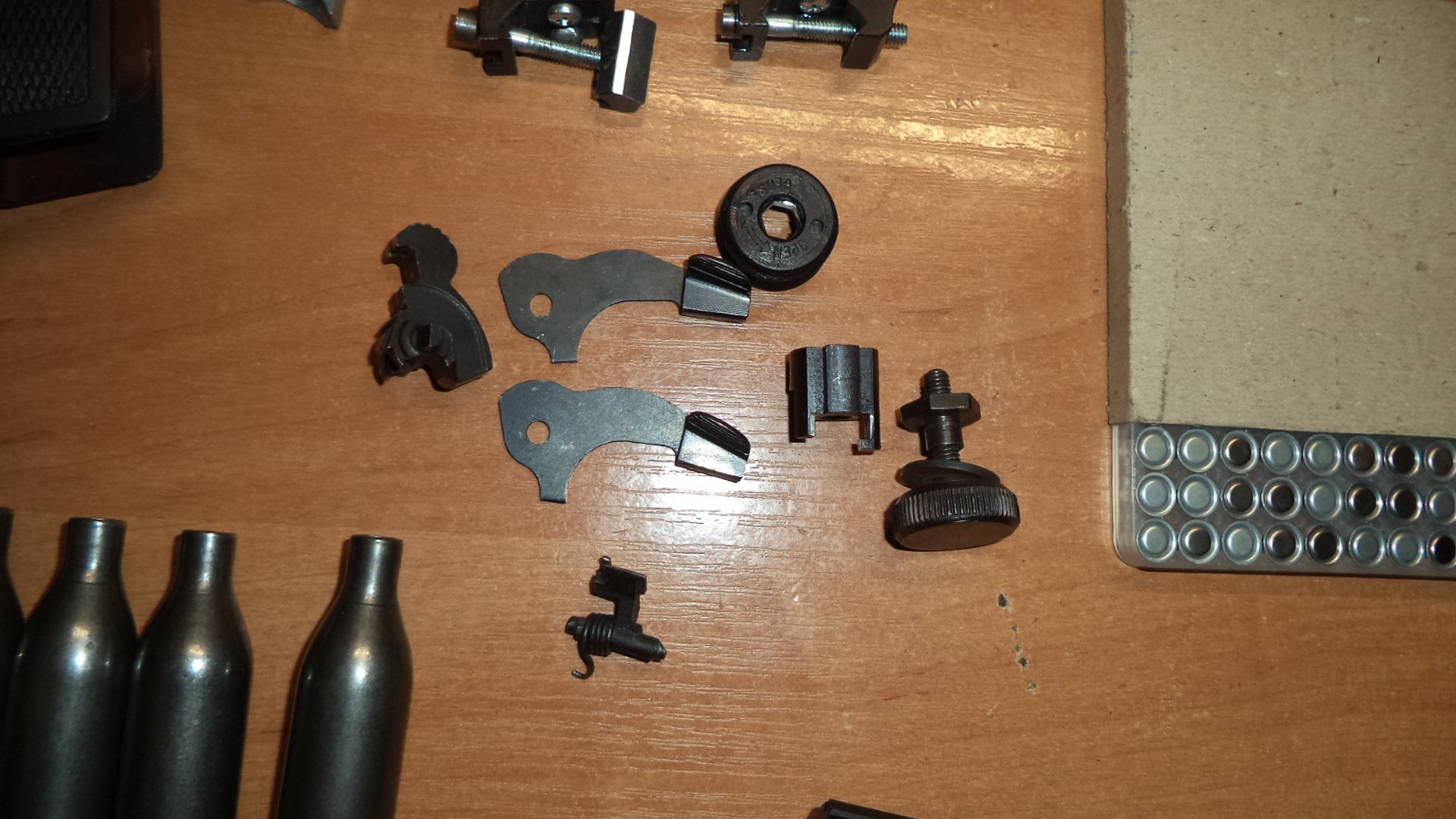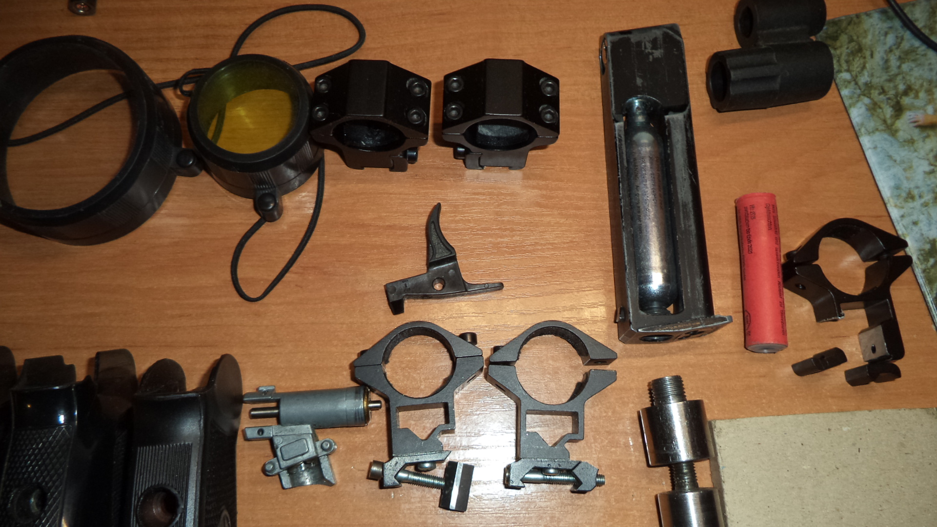 Продам всякие запчасти оставшиеся после ремонта своей пневмы , дешево. Жевело 10р, Кольца 25 на ласту 10р, баллоны 8гр 5штук с камерой 15р, ЛЦУ от Береты 15р, рукоятки ПМ по 5р, магазин не помню от чего неисправный 3р, колпачки от прицела 3.9 на 56 5р, остальное по 3р.Если все вместе50р. пересыл отдельно.