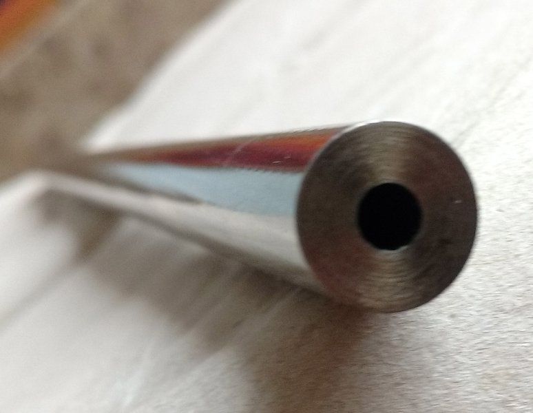 Длина 700 мм, внешний диаметр 18 мм, твист 406 мм, 8 полигональных нарезов. Поля - 7,6 мм, нарезы - 7,85 мм.