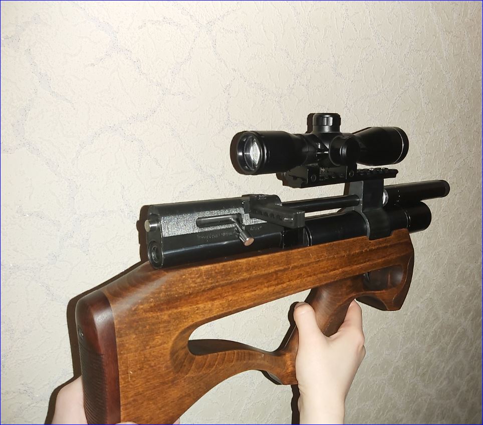 Сделана щека на 3д с с реечными барабанами на 6 пуль ( 4 есть ). При желании снимается без разбора булки путем выкручивания ручки взвода и одного движения назад. Щека по ласте слазит назад.